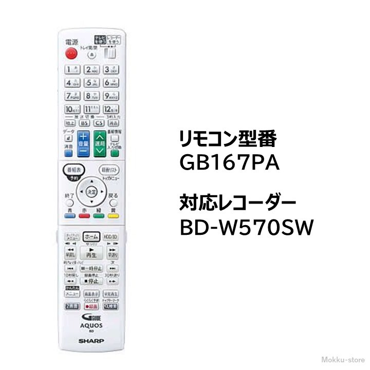 シャープ アクオス ブルーレイ 純正リモコン GB167PA SHARP AQUOS レコーダー リモコン 0046380268 BD-W570SW 收藏