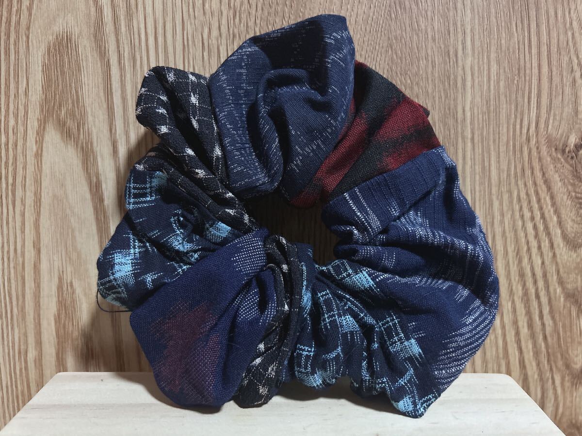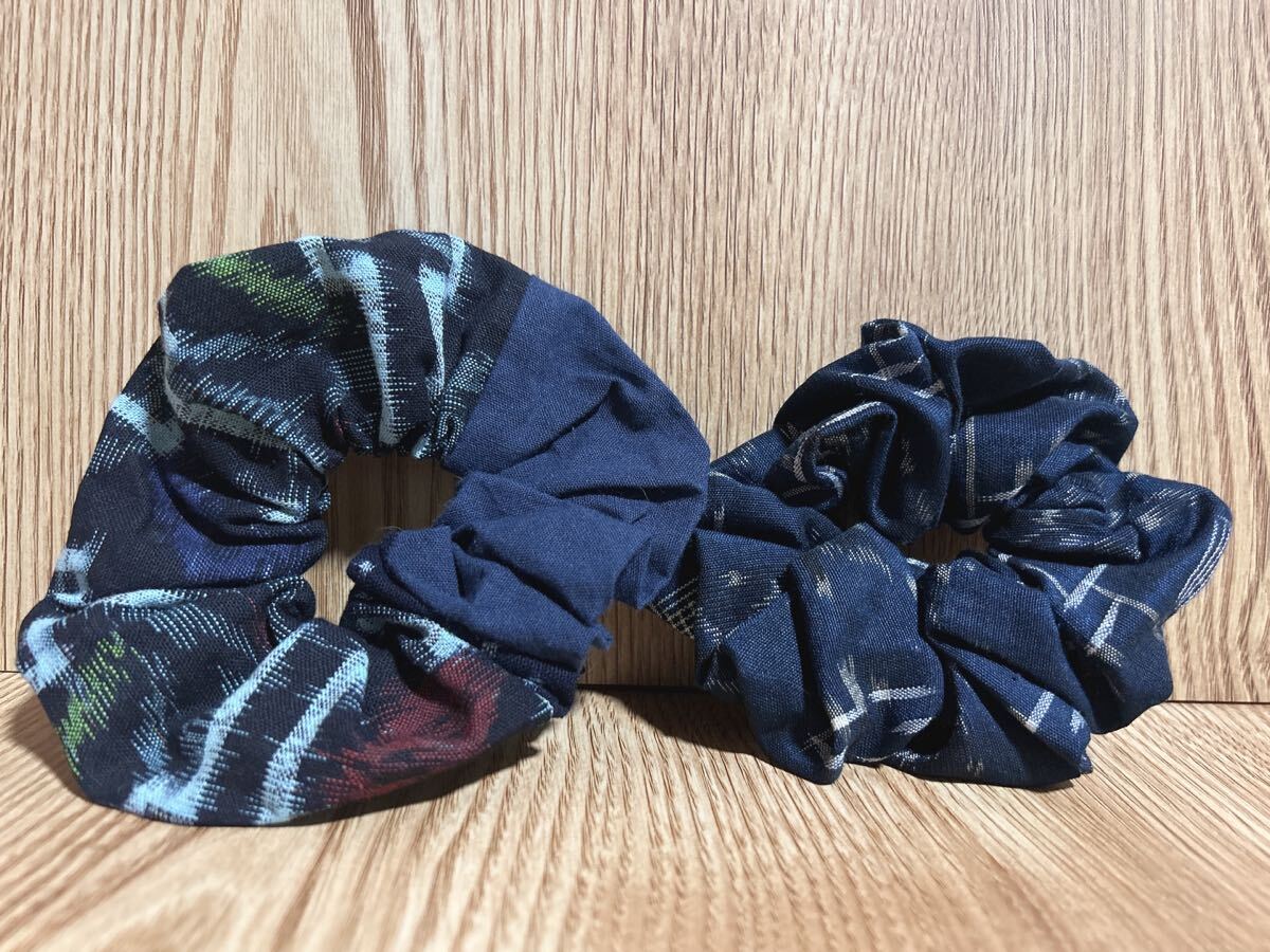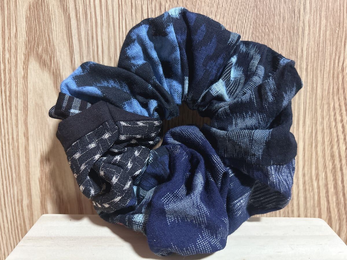 66☆ハンドメイド☆絣シュシュ4つセット☆和柄ヘアゴム☆パッチワーク☆古布リメイク☆藍染☆久留米絣☆備後絣☆絵絣☆結城紬 收藏