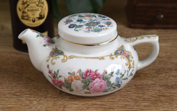 薔薇が好き 【薔薇とゴールド】 花々のブーケ 華やかなティーポット コーヒーポット ポット 1個 アンティーク 收藏