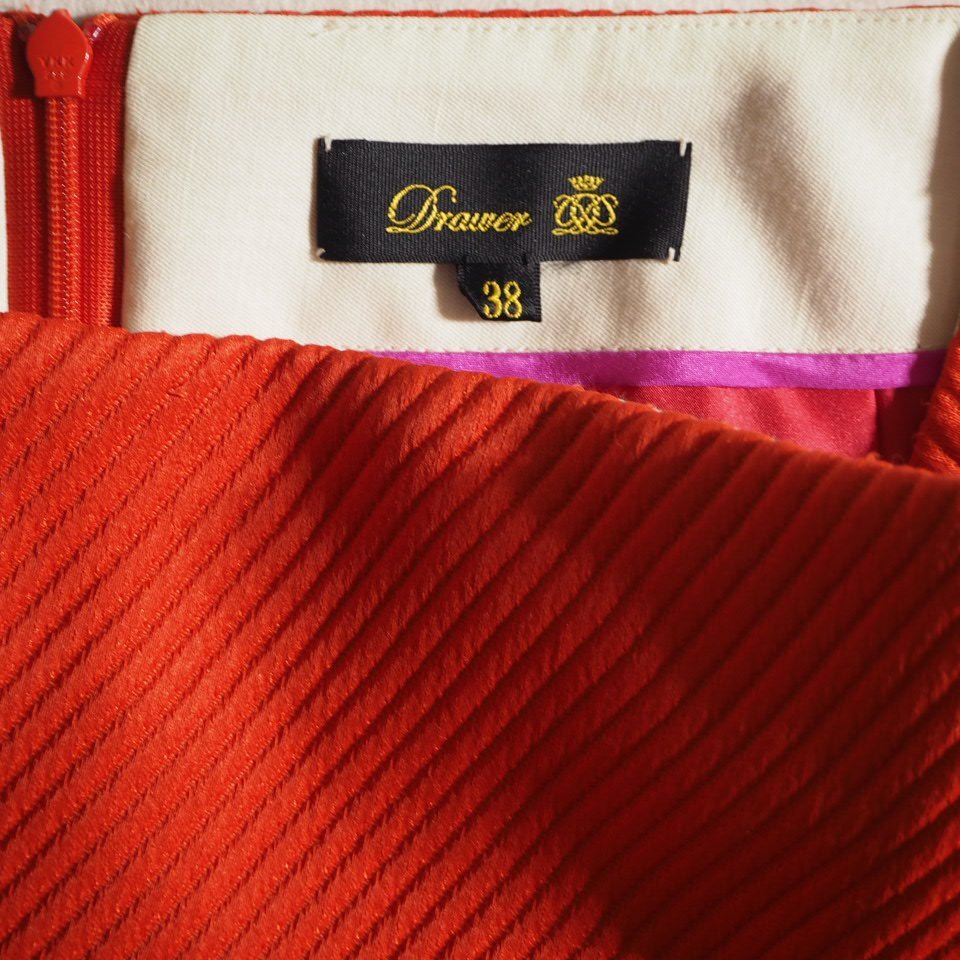 R0989z8 ▼Drawer ドゥロワー▼ コットンアセテート スカート オレンジ 38 / 台形 フレア 裏地シルク 6524-299-1024 春~秋 收藏
