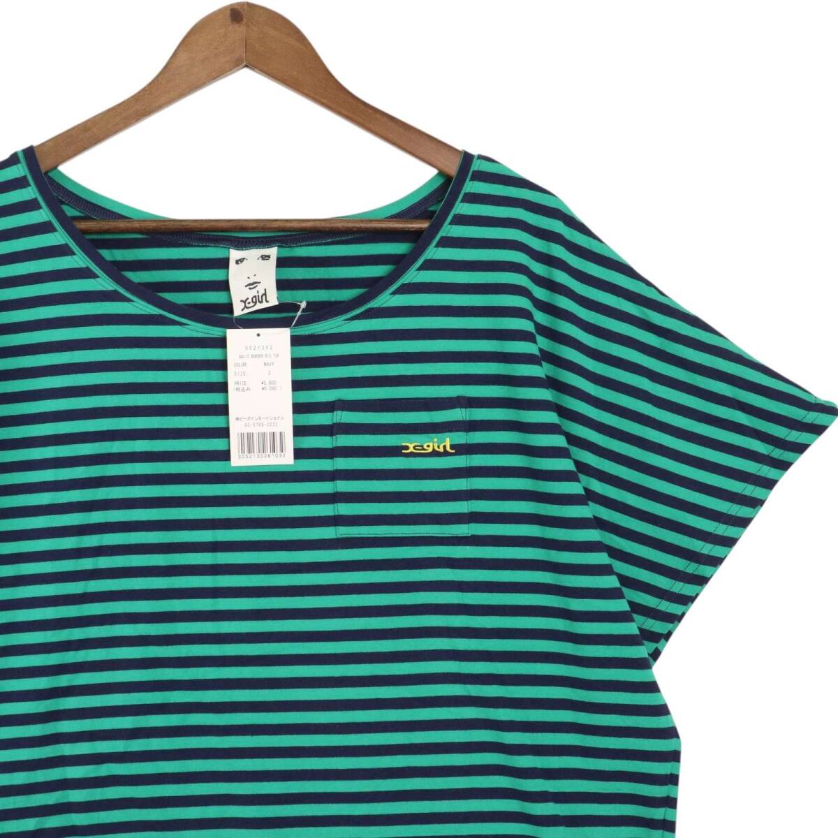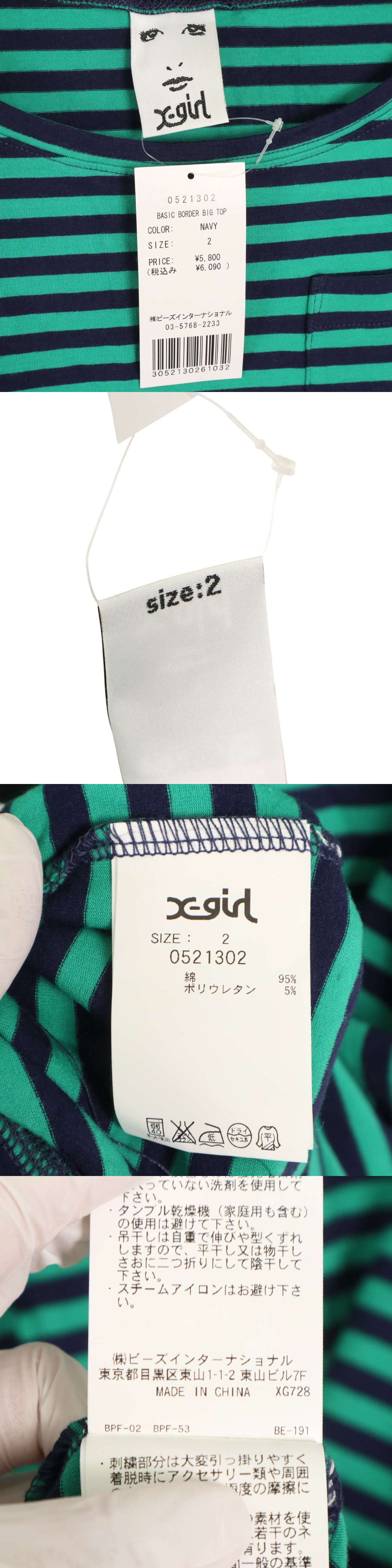 【新品 未使用】 X-girl エックスガール 春夏 ストレッチ★ ボーダー Tシャツ カットソー Sz.2 レディース 收藏