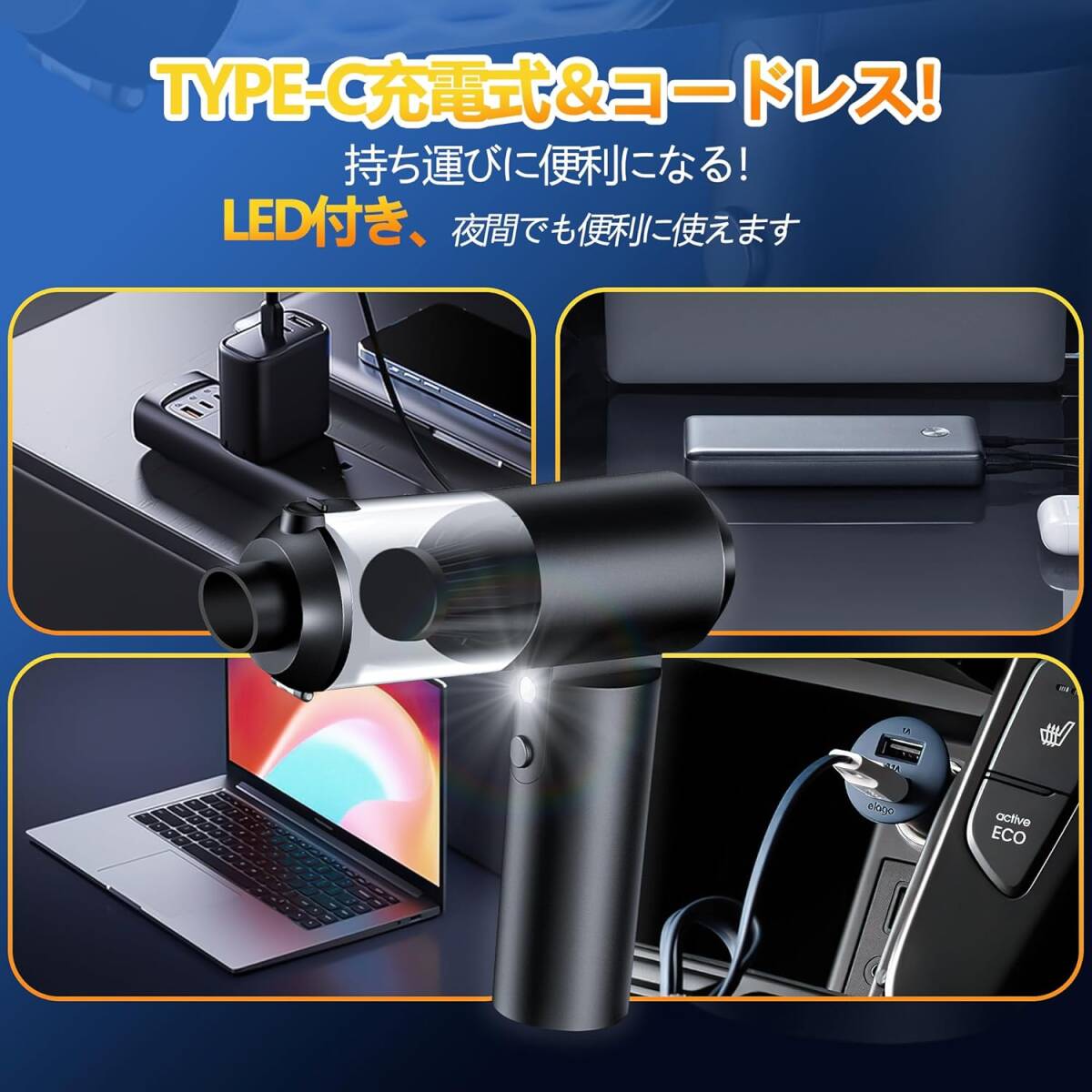 ハンディクリーナー 多機能ミニ掃除機 車用掃除機 コードレス 電動エアダスター 吸い込み&吹き飛ばし両用 車載ミニポータブルコードレス 收藏