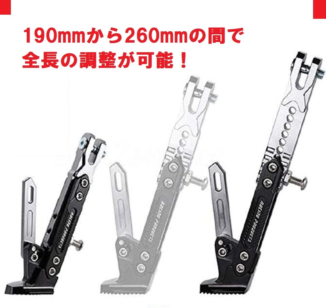 190mm~260mmで全長調節可能ロードバイク スクーター 汎用 サイドスタンド 長さ調節可能 レッド ホンダ ヤマハ スズキ カワサキ 4 收藏