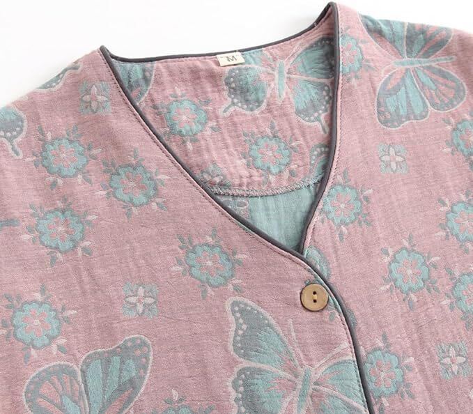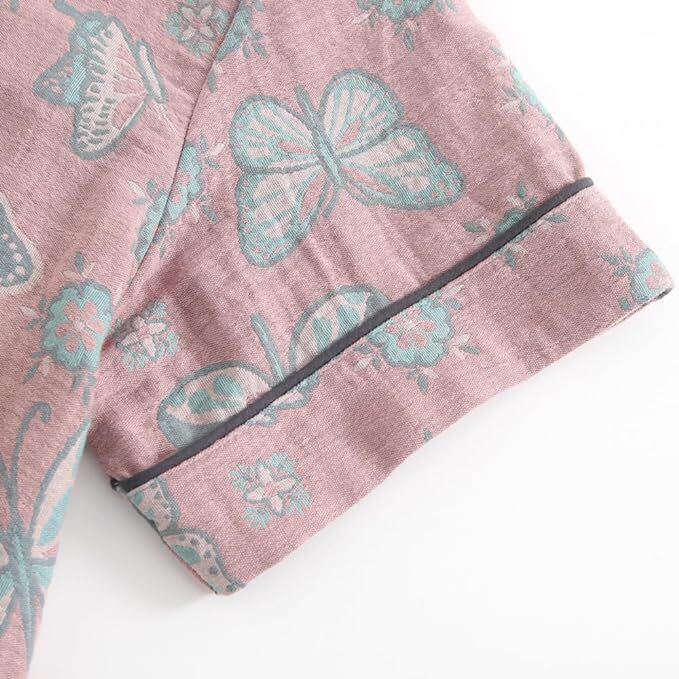・ゆったり過ごしたい日もちょっとおしゃれに。 “綿”から始める心地よい暮らし。 蝶柄の上質なガーゼ素材を、パジャマとして展開。 使い込むほどに肌に馴染み、夏に快適に着られる。 綿(ガーゼ)生地は吸水速乾性に優れ、お洗濯後の乾きが早く、汗をかいてもさらり。 結婚祝い・記念日や誕生日のプレゼントにおすすめです。