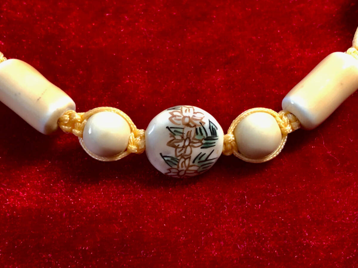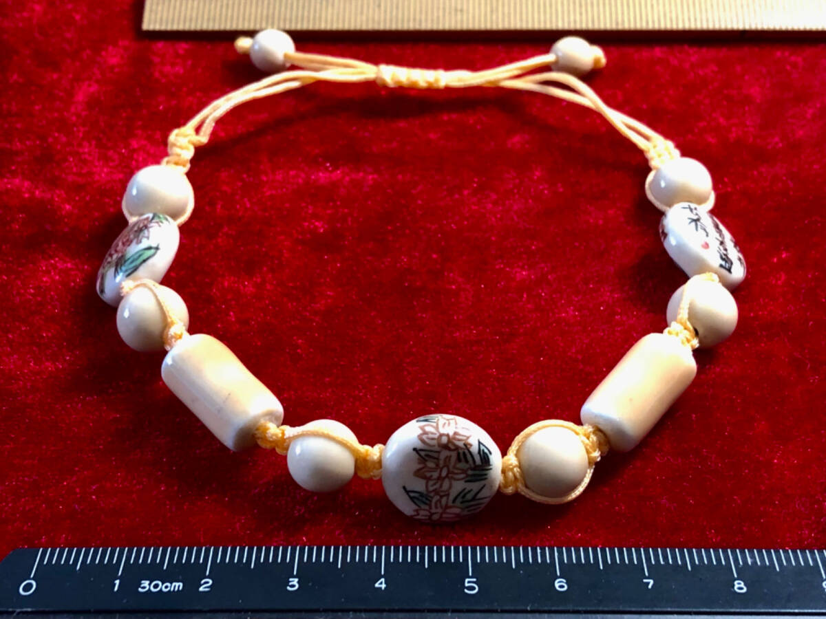 Φ 粉彩磁ビーズ・ブレスレット Φ 2個で “花開富貴・友誼長存“ 縁起良い紐結び 手作り ベージュ色ビーズと同色紐 手芸アクセサリ 收藏