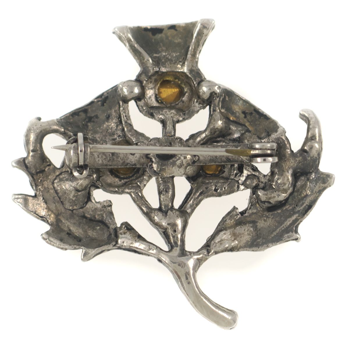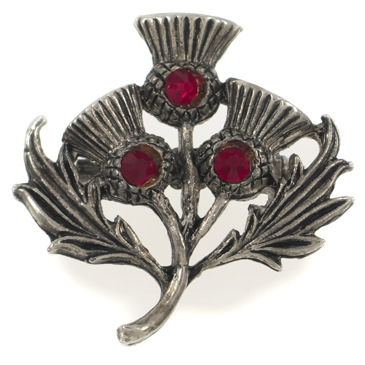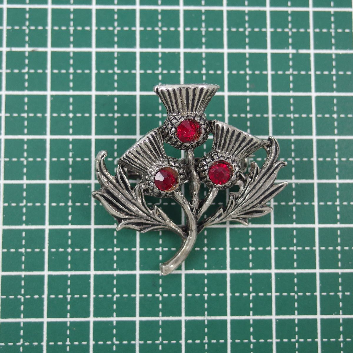 UK4183◆ アザミの花 レッド系ラインストーン フラワーモチーフ ◆ ヴィンテージブローチ ◆ イギリス ケルト 英国 ◆ 收藏