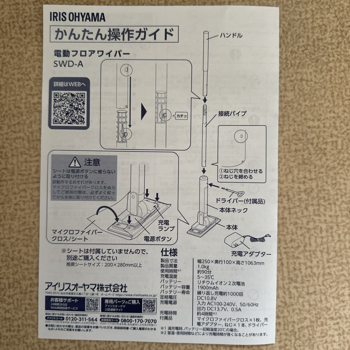 アイリスオーヤマ電動フロアワイパーSWD-Aホワイト【新品未使用】 收藏