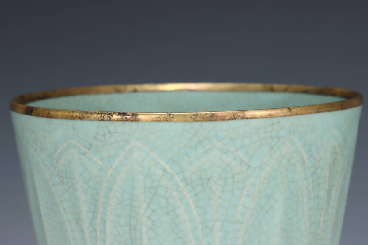 TM9#9699【3.1】中国骨董 人間国宝 磁器【旧蔵宋汝窯蓮弁碗】工芸品 施釉陶 青花磁 陶芸 精美彫 置物 收藏品 收藏
