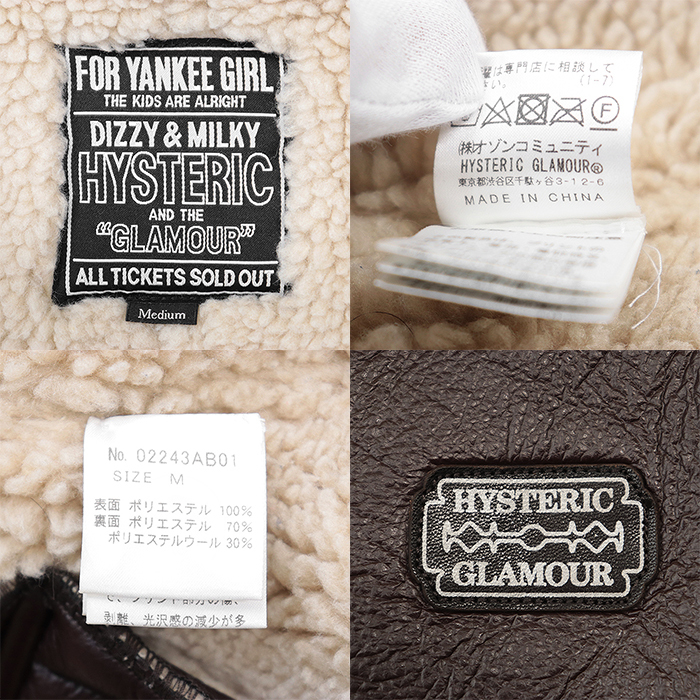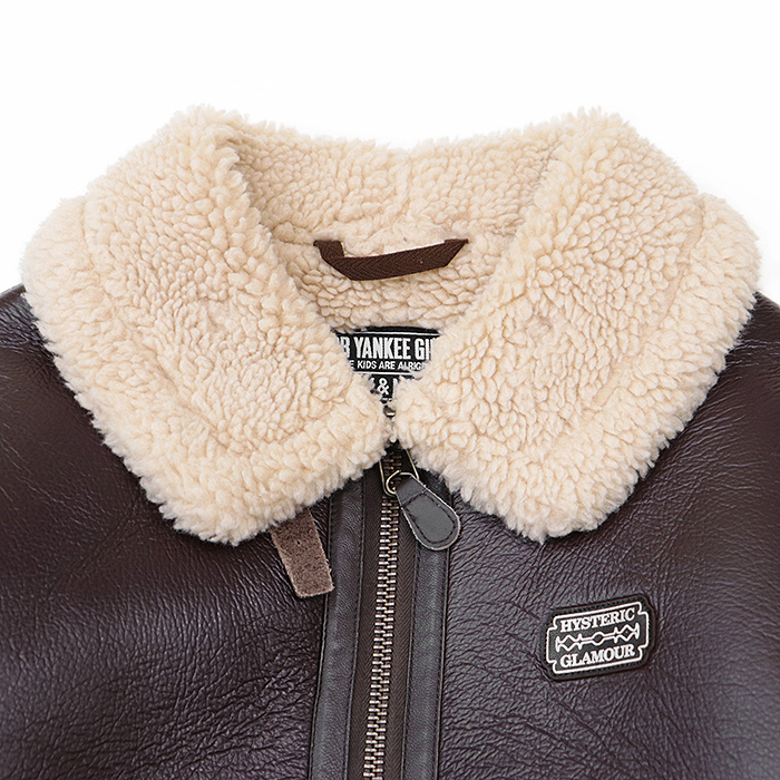 HYSTERIC GLAMOUR ヒステリックグラマー フライトジャケット B-3 フェイクレザー ボア ロゴ ワッペン アウター メンズ M ダークブラウン 收藏