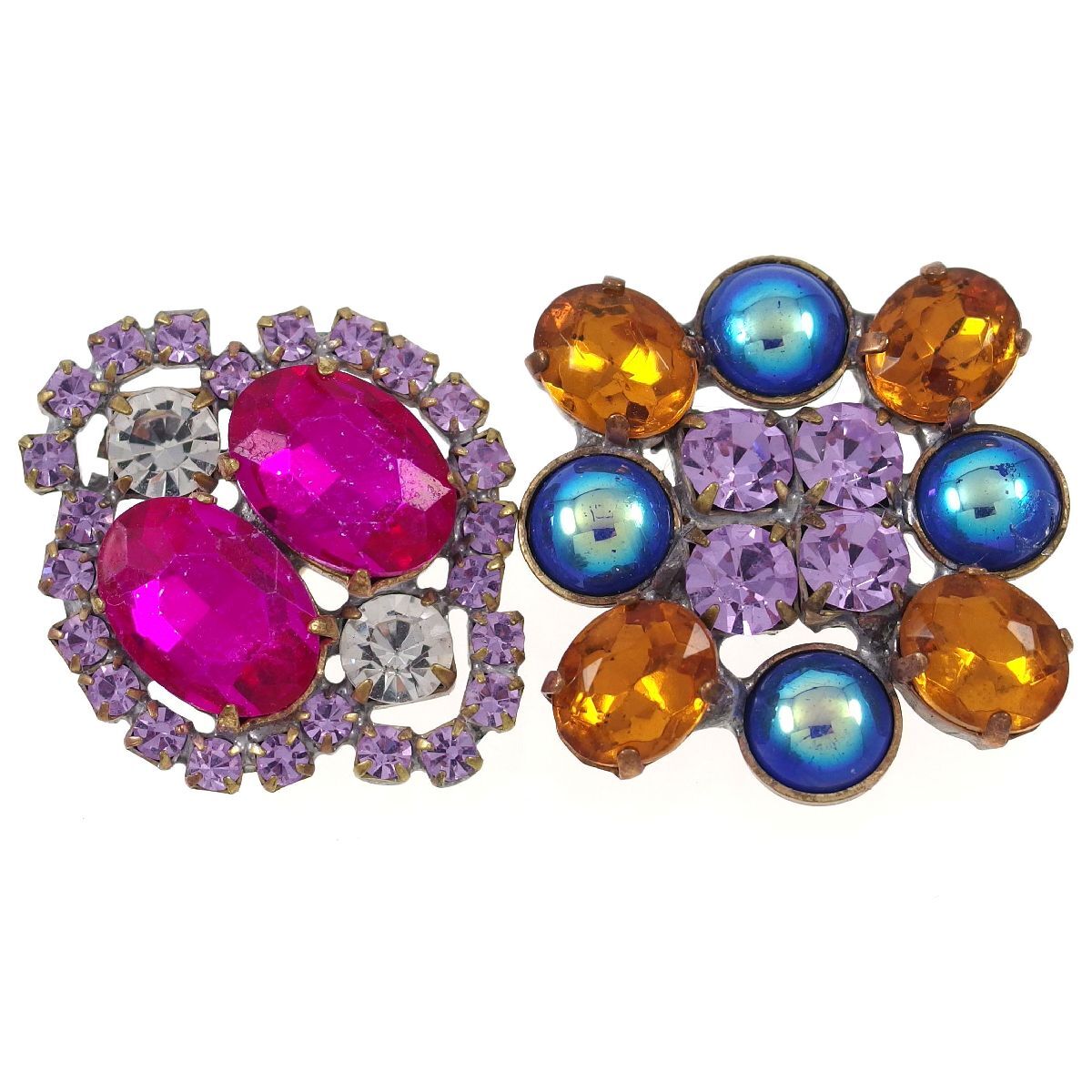 C7629◆ 2個 美しいヴィンテージボタン チェコ産 ガラス ラインストーン ◆ ハンドメイド * 手芸 ◆ 收藏