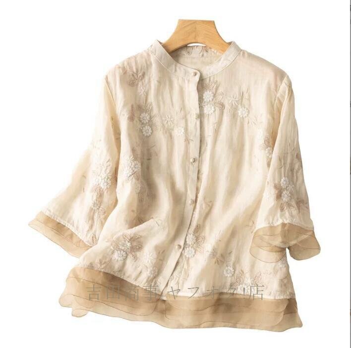 ☆新品ブラウス レディース 七分袖シャツ 綿麻シャツ チュニック 刺繍 トップス オシャレ 開襟 きれいめ 通気性M~XXL 收藏