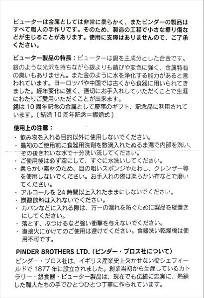 | Pinder Bros[ピンダー・ブロス]ピューター ウイスキーボトル・プレーン 6.0oz じょうご付 6-60601-61 | |||||||||||
