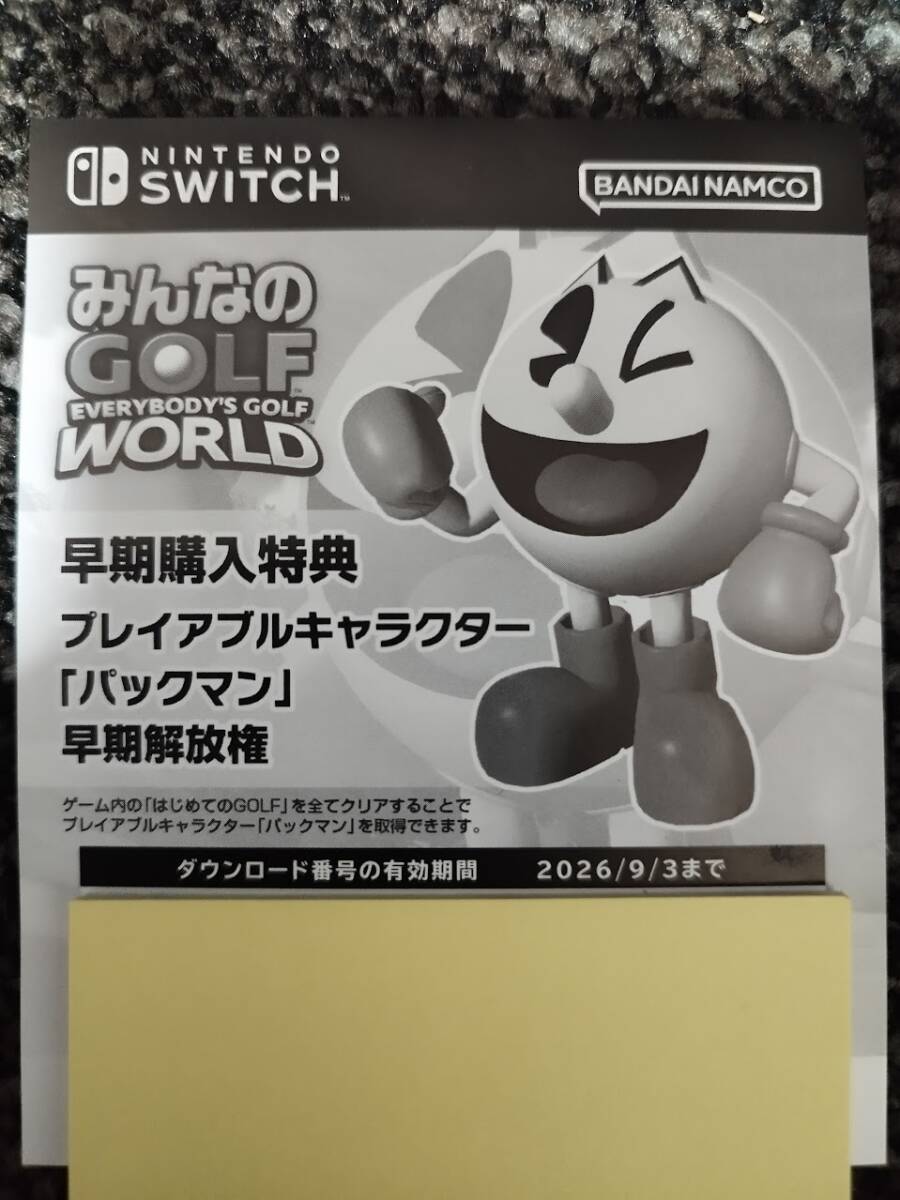 Switch みんなのGOLF WORLD 早期購入特典DLC「パックマン」早期解放権 コード通知 收藏
