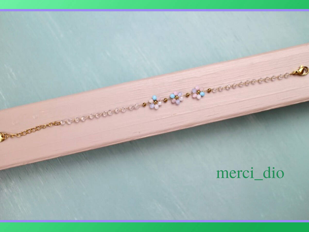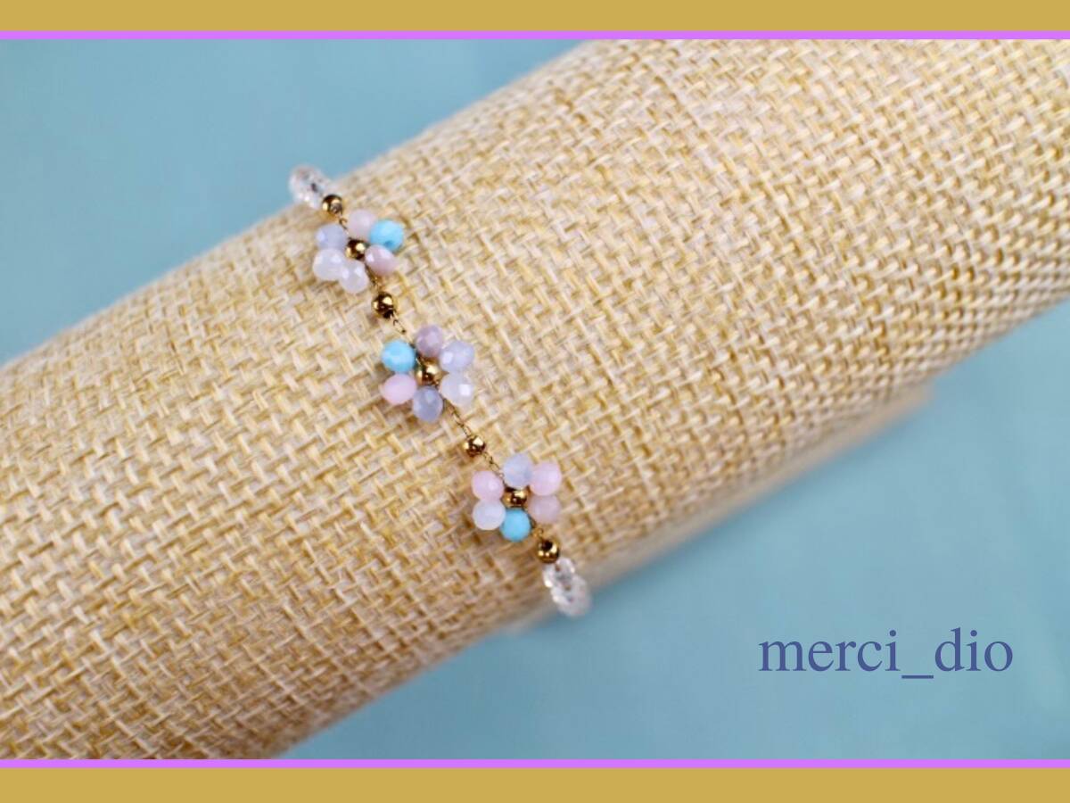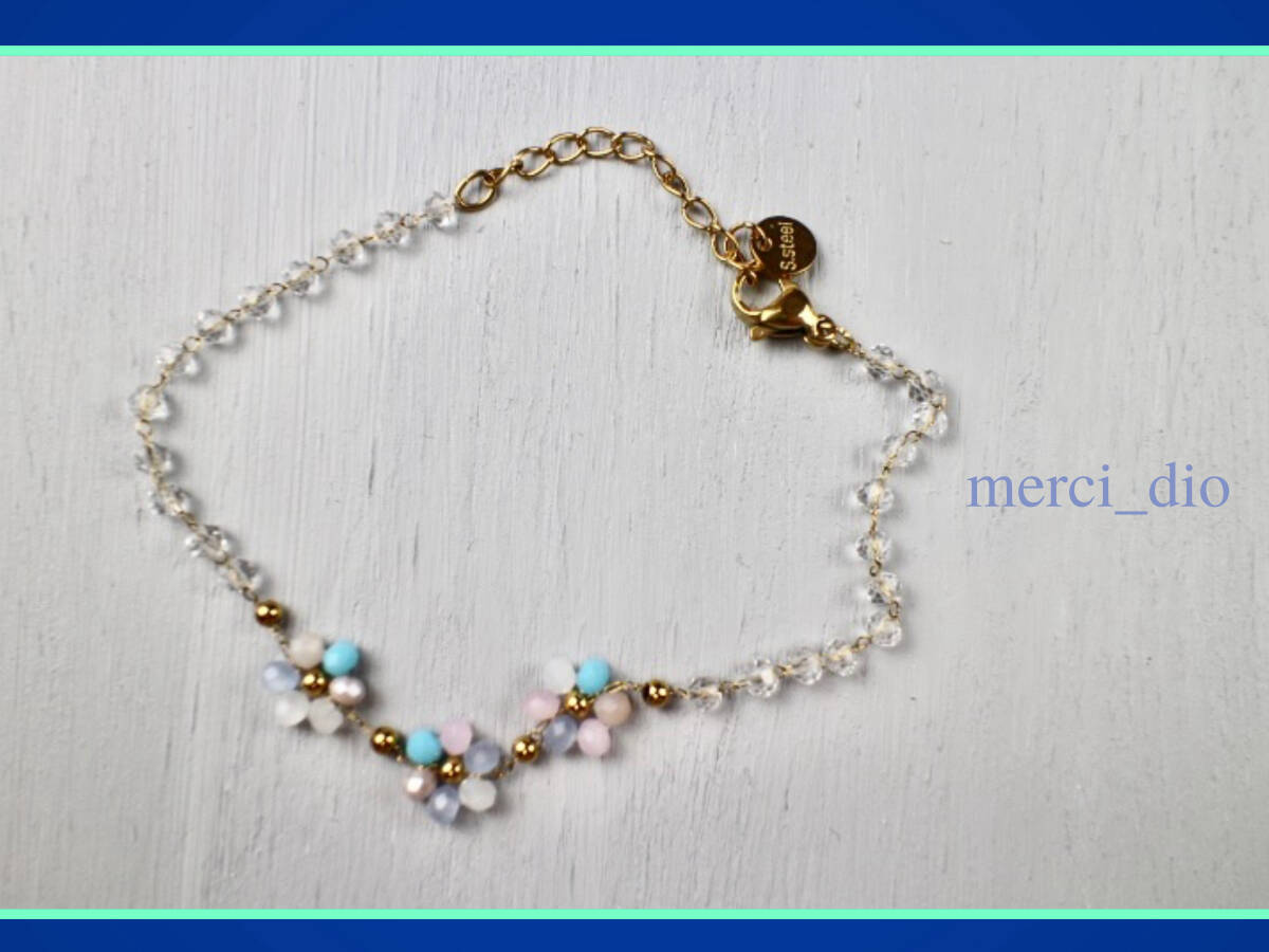 トゥモローランド TOMORROWLAND ビーズフラワー ゴールドカラーチェーン ブレスレット パステル クリア トレンド 新品 未使用 シップス wai 收藏