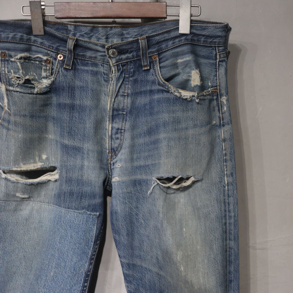 【即決】euro Levis 501 ユーロ リーバイス インディゴ デニム パンツ ジーンズ ヒゲ ダメージ リペア クラッシュ ボロ BORO 古着 W33 收藏