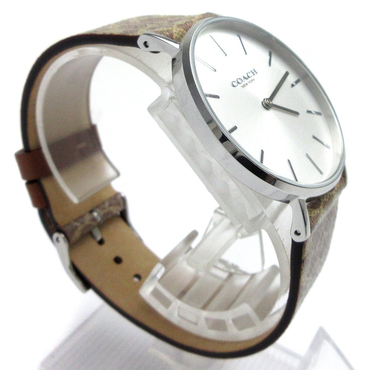 コーチ ペリー レディース 革 シグネチャー シルバー文字盤 CA.120.7.14.1596 時計 COACH クォーツ 婦人 箱 稼動品 收藏
