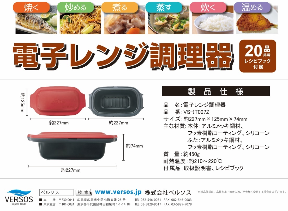 VERSOS 電子レンジで魚が焼ける 電子レンジ 調理器 焼き魚 魚焼き器 レンジグリルパン 丸型 調理器 レシピブック付き プロ 收藏
