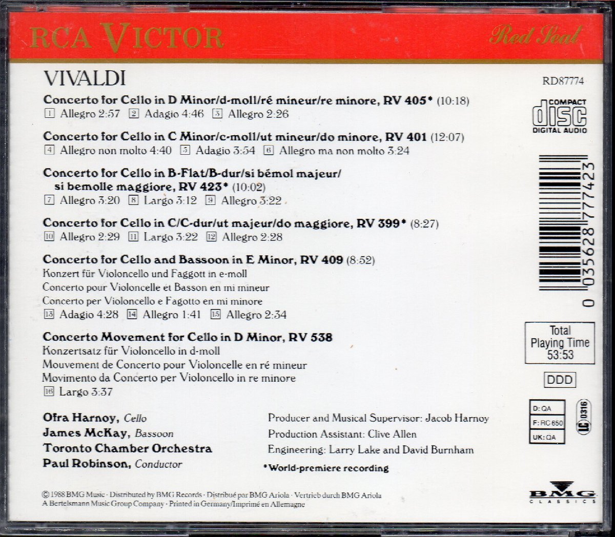 ヴィヴァルディ:チェロ協奏曲集 (1) ハーノイ(vc) 他 (RD87774) 收藏