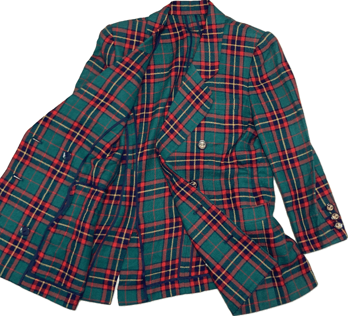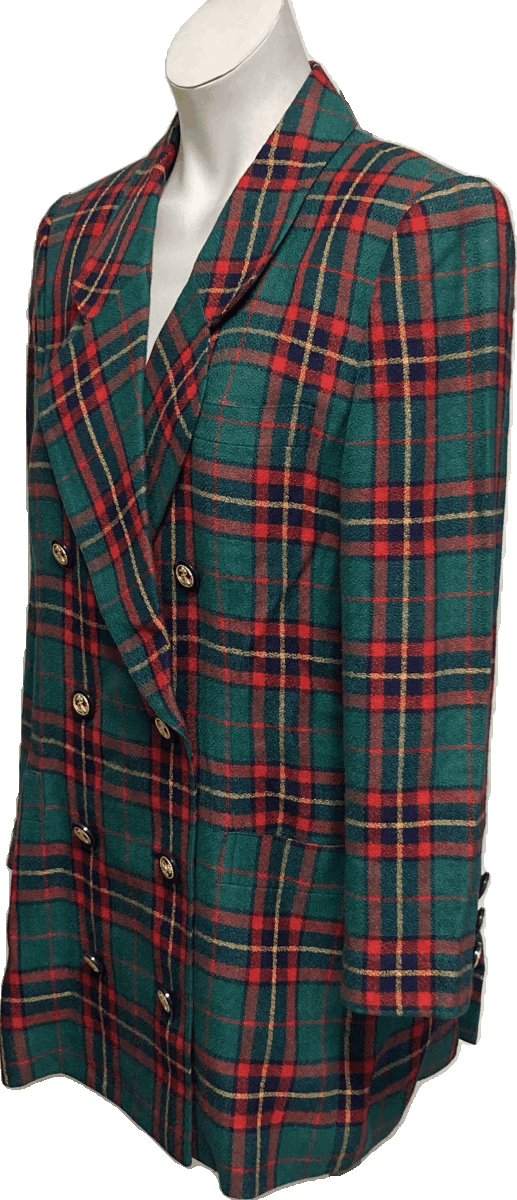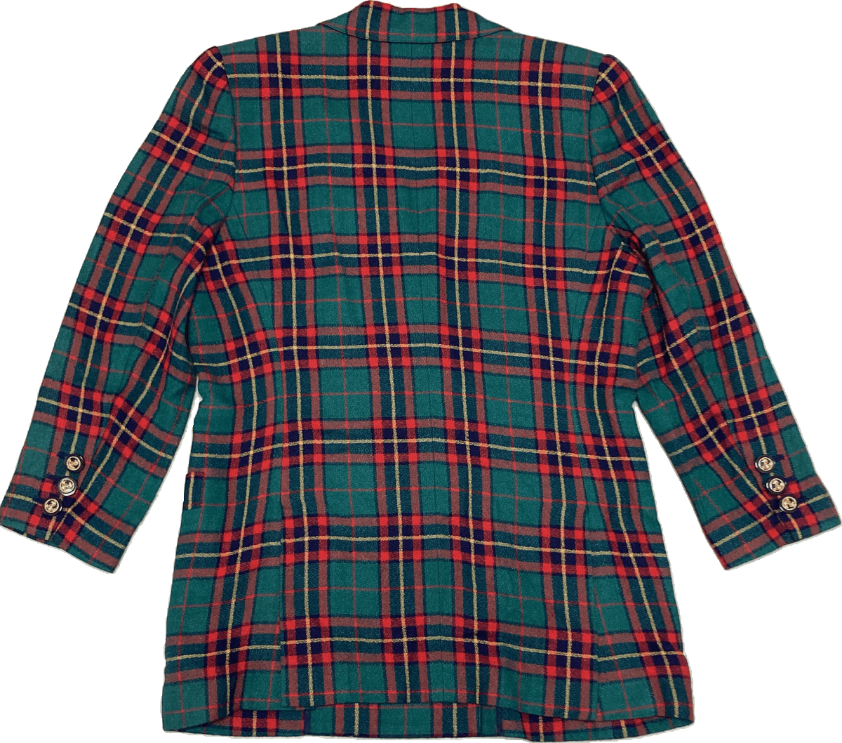 美品☆キャラオクルスCARA O CRUZ レーヨンリネン一枚仕立てダブルブレザー イタリアAngelo Vasino社生地 チェック緑赤9☆ヴィンテージ 收藏