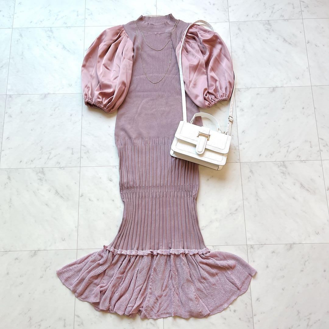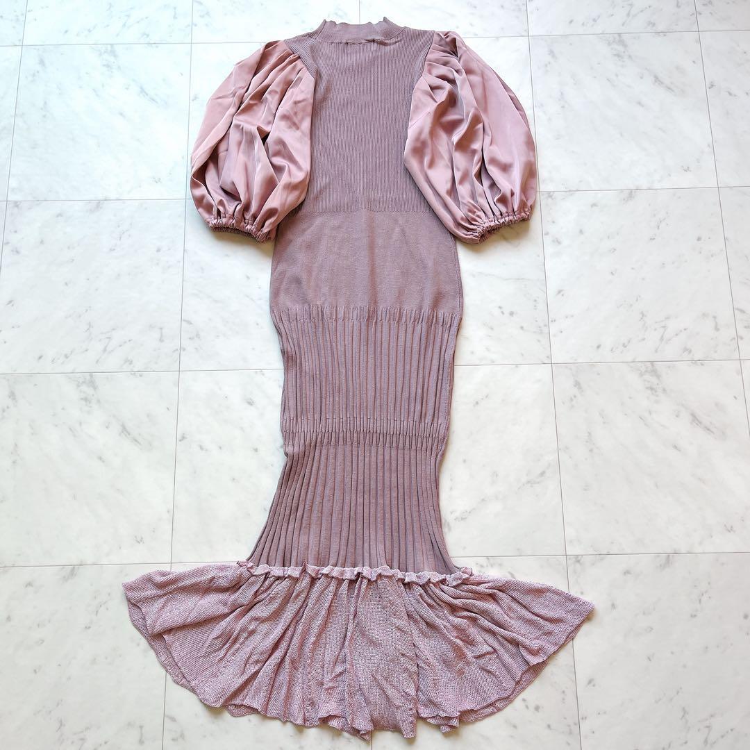 eimy istoire エイミーイストワール 定価1.9万円 ロングワンピース ニットワンピース リブニット フリル マーメイド ピンク F 收藏