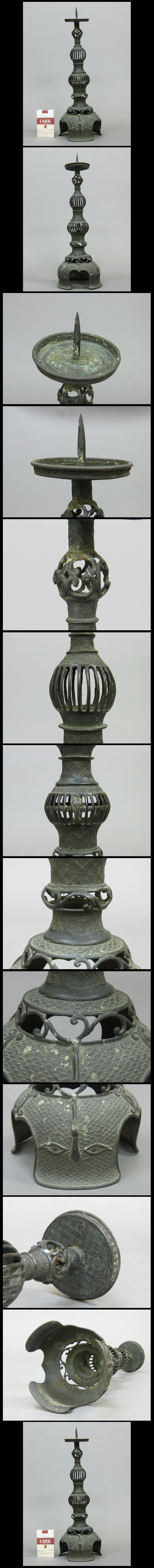 【心庵】時代物 銅製透彫唐草文/燭台 蝋燭台 高さ42cm B277 收藏