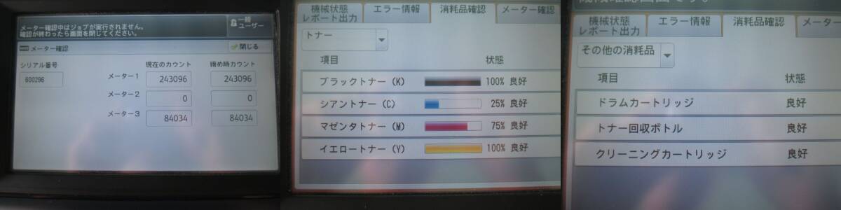 ◆外観・商品特筆事項 ・複合機は通電及び動作確認済みです ・カウンター数327130枚となっております。 ・本体機能でのテスト印字問題ありませんでした ・シアントナーのみ残量が少なくなっています ・その他トナーは全色半分以上残っております ・カラーテスト印字結果を商品画像10に載せていますのでご確認ください ・専用のプリントサーバーはBIOS立ち上げのみ確認済みです ・HDDは取り外し済みです、HDD及びOSとソフトウェアはご自身で用意して下さい ◆クリーニングについて アルコール消毒を行っていますが細かい汚れ残っているかもしれません ・電源ケーブルなどのケーブル類は原則付属しません 付属する場合がございますので商品画像で付属の有無はご判断ください 到着後のケーブル等付属品に関するお問い合わせを頂きましてもお答えできませんのでご了承の上 ご落札をお願い致します |