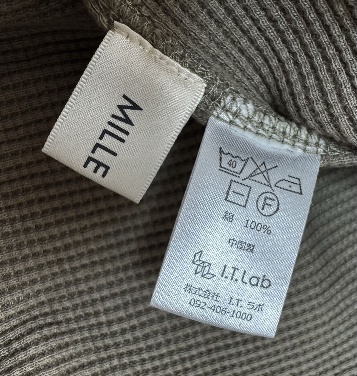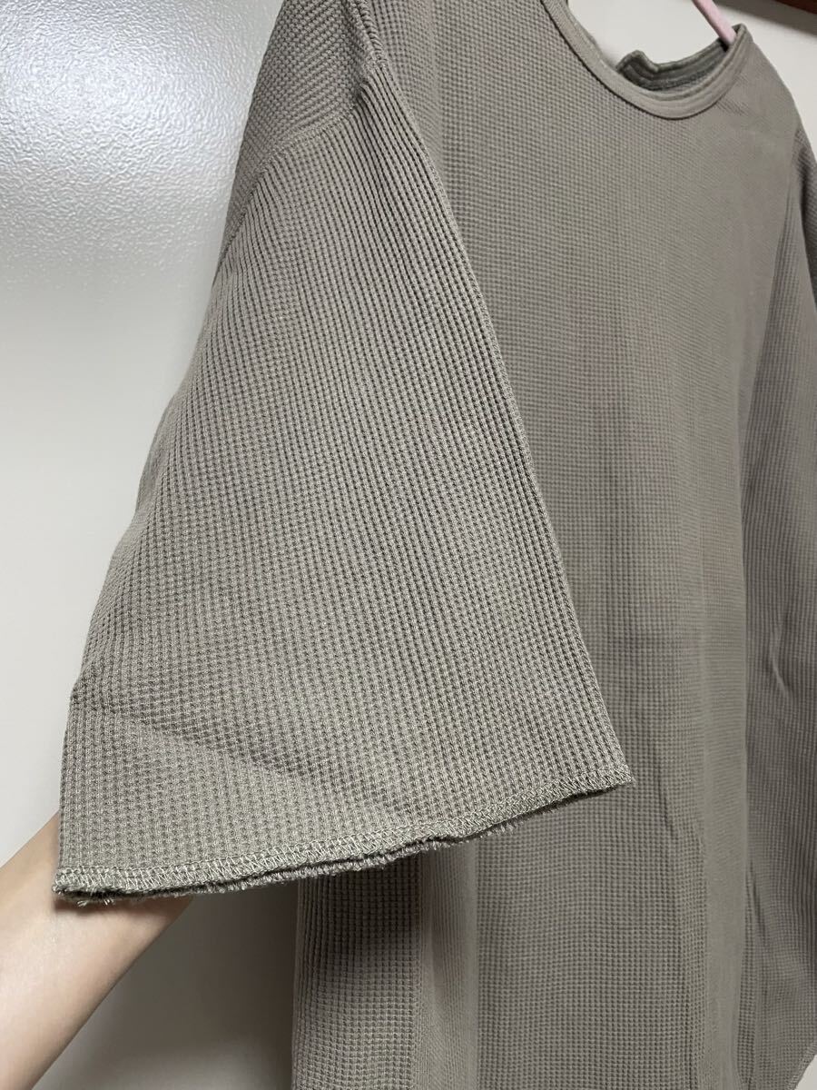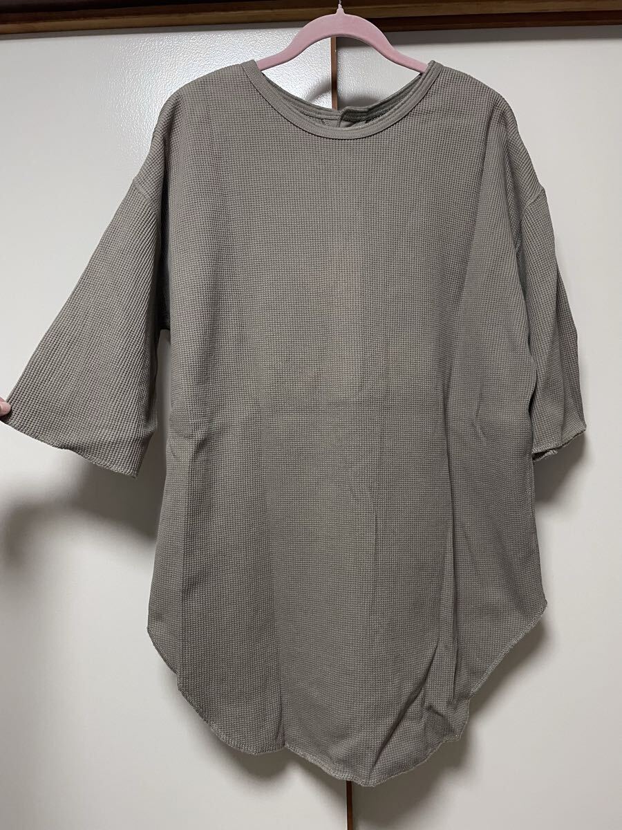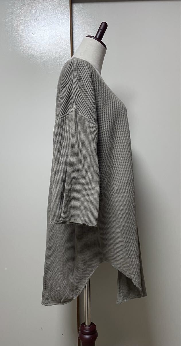 A★美品★MILLE GOUTS★7分袖 チュニック オーバー Tシャツ レディース フリーサイズ M L グレージュ ワッフル生地 綿100% ロングシャツ 收藏
