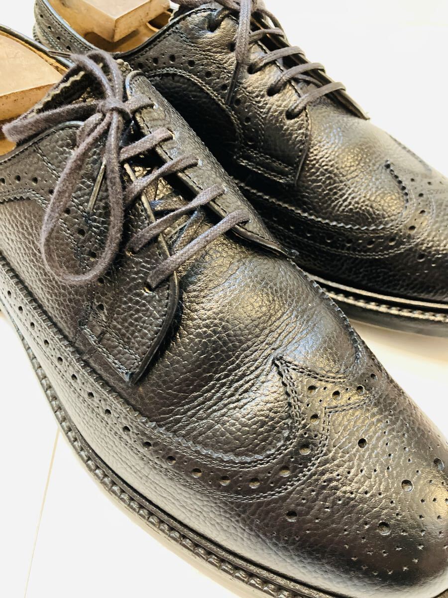 | 数ある商品の中からご覧頂き誠にありがとうございます! 商品名 リーガル タイプ ウイングチップ サイズ 25.5EE カラー ブラック 状態 レベルは4 【5】新品に近い美品状態 【4】履きジワ・カカトの減りも少なく綺麗な状態 【3】一般的な中古品レベルの状態 【2】履きジワ・カカトの減りもある状態 【1】ボロボロ どんなシーンでも対応できるブラックのウイングチップになります。メダリオンの華やかさが足元をドレッシーに仕上げてくれます(^^)また、こちらのお品はグレインレザーという表面に凹凸のあるデザインで、重厚感が増すことで男のダンディズムを格上げしてくれます(*≧∀≦*)一足は持っておきたいですね♪ ステインリムーバーで汚れを落とした後にクリームの塗布、ブラッシング、拭き上げの靴磨き工程を施してますので、到着後にすぐご利用いただけますよ(^^)アッパー、ソール共に良好です。 使用回数も多くなく全体的に美品です★ シューキーパーは付属しませんのでご了承下さい。 不明点ございましたらご質問下さい。 | |||