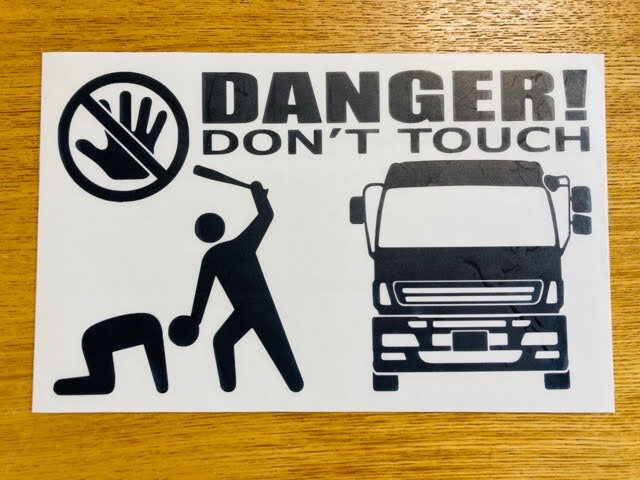 B-L)ISUZUいすゞ_ギガGIGA_2005-2007_front DANGER手バット正面 カッティングステッカー シール セキュリティ 收藏