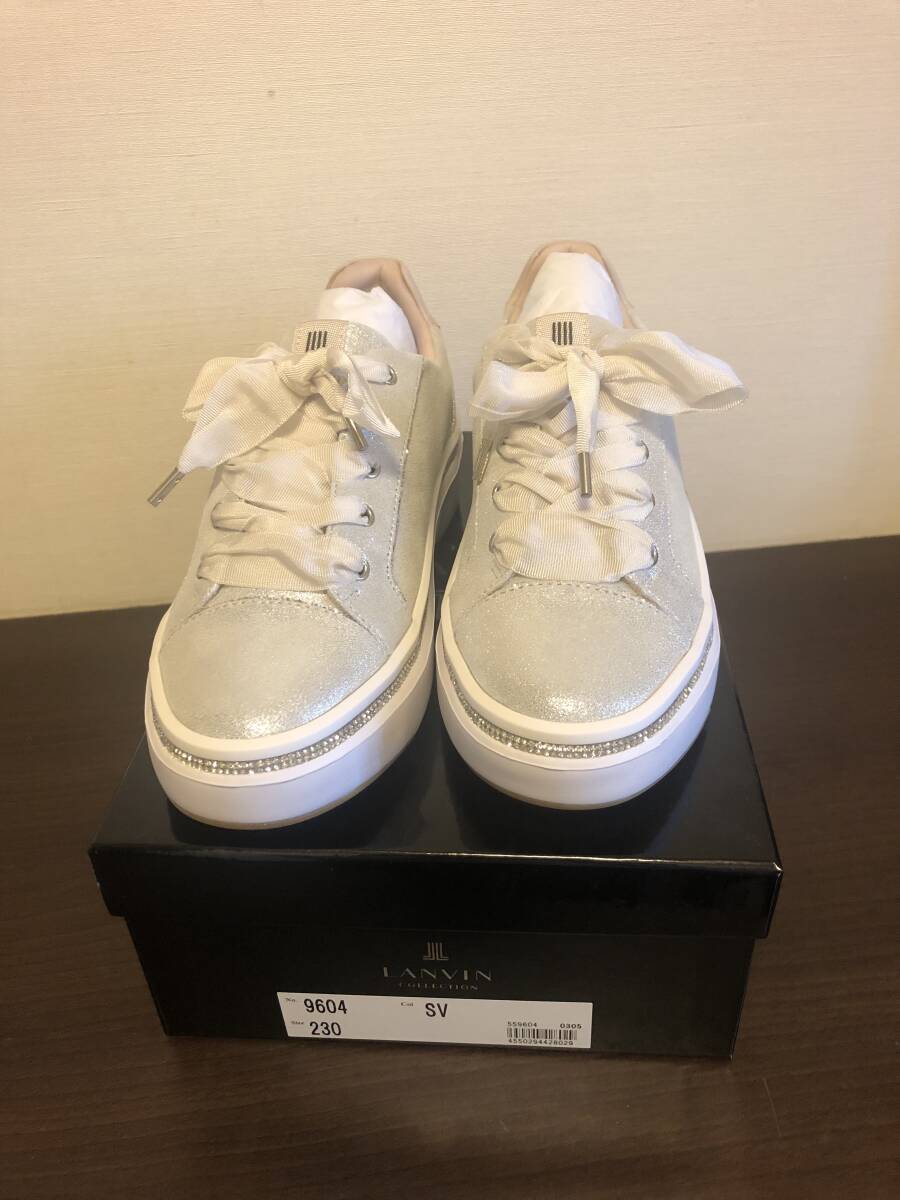 送料無料★ランバン LANVIN COLLECTION ホットフィックスレースアップスニーカー 23cm シルバー 新品 收藏