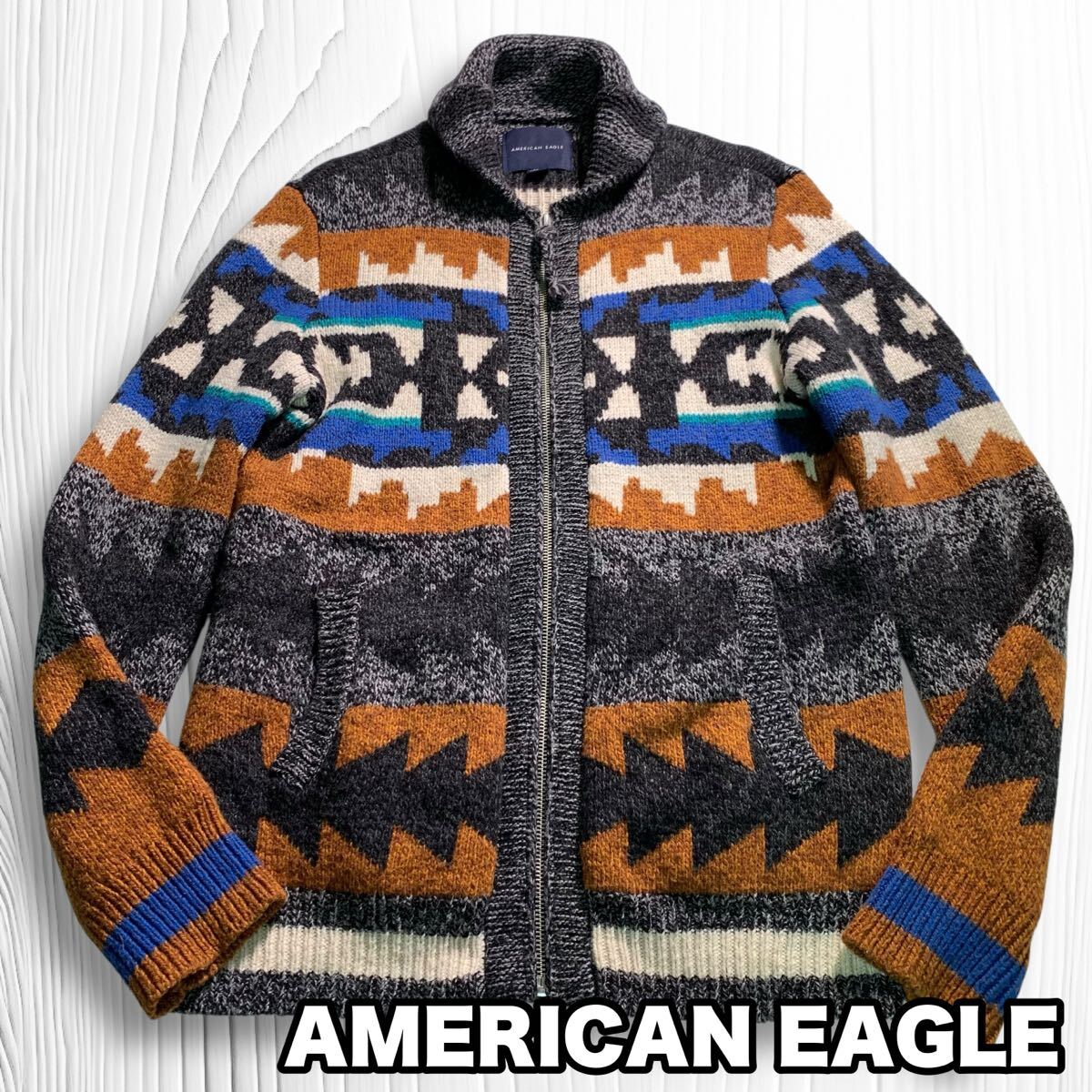 AMERICAN EAGLE 幾何学模様 ドライバーズニット ショールカラー Mサイズ ニット カウチンセーター ジップアップ 收藏