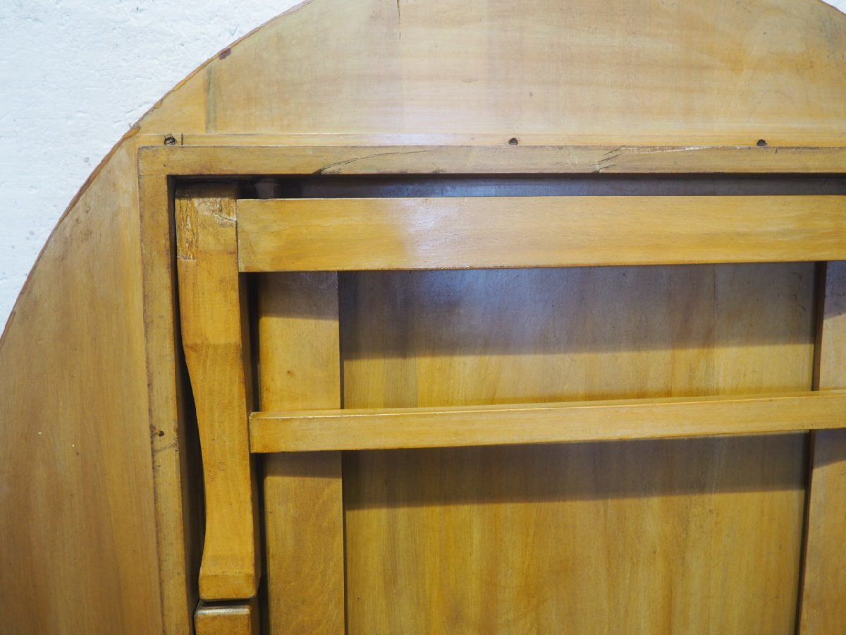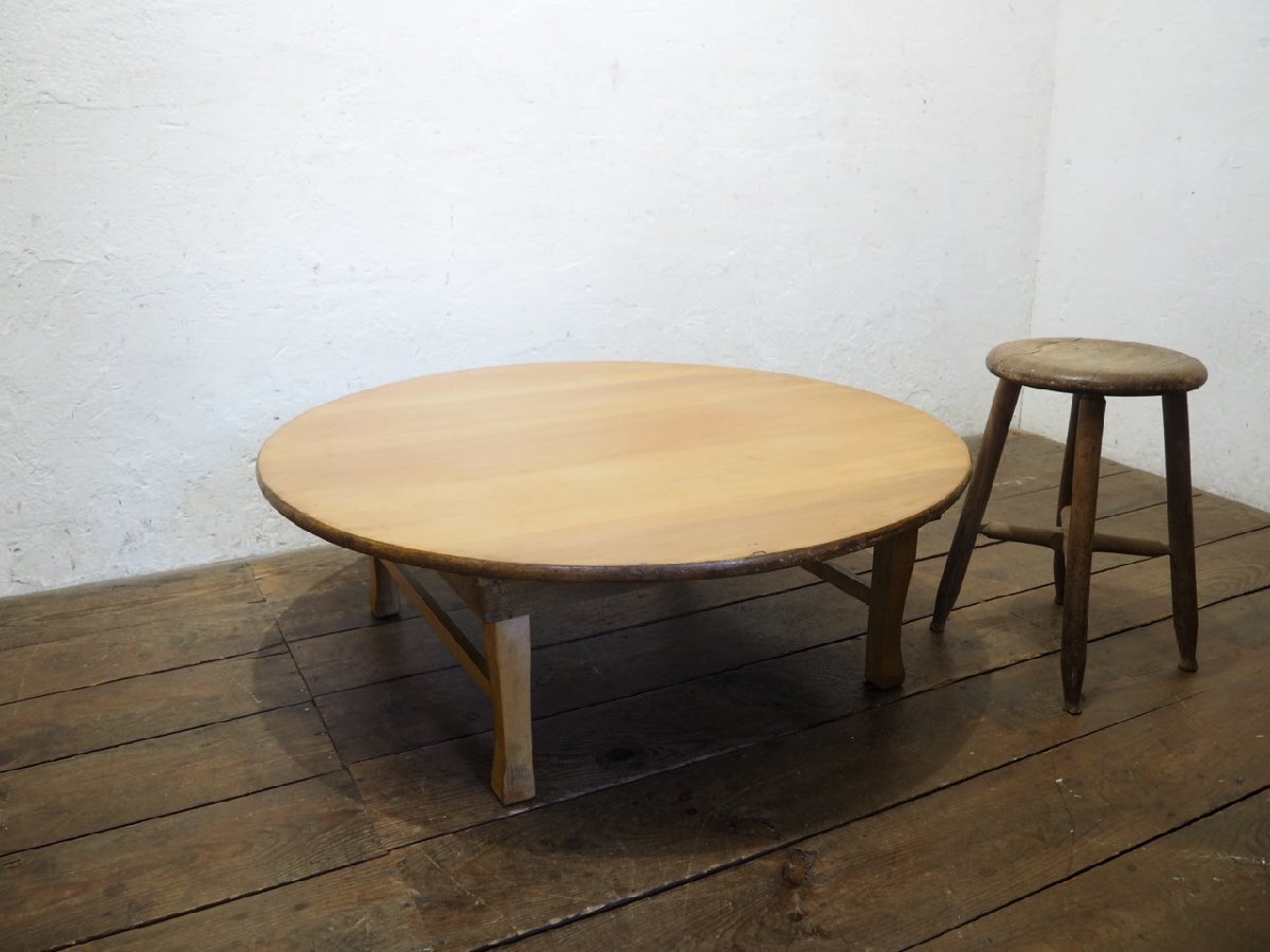 タU0830◆直径91cm◆折り畳み式◆レトロな古い木製ローテーブル◆ナラ材 座卓 文机 丸ちゃぶ台 古家具 リビング ビンテージI笹4 收藏
