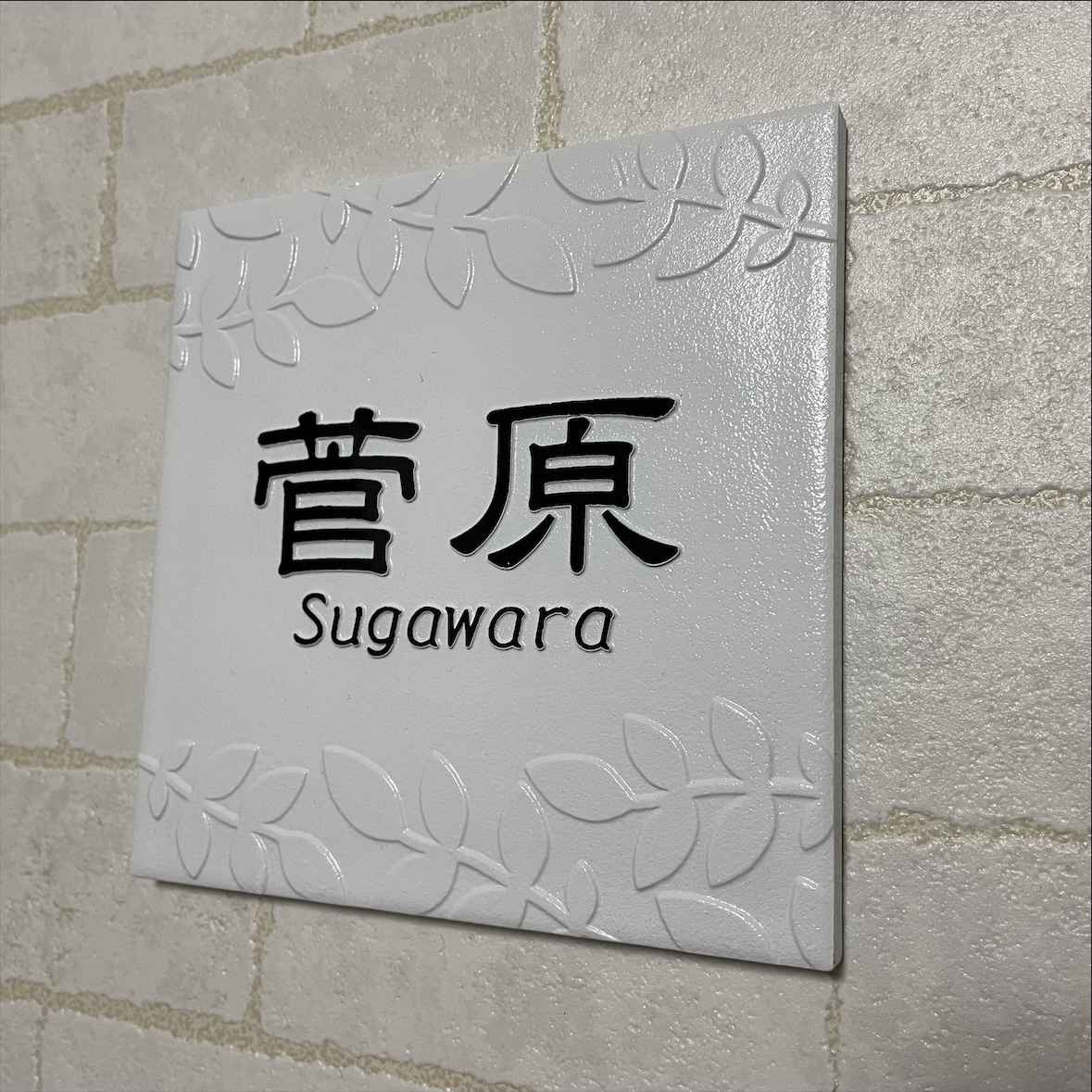 表札 見本品処分「菅原 Sugawara」150角タイル ネームプレート 二層浮き彫り表札 風水 收藏