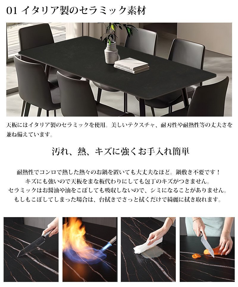 ダイニングテーブル イタリアン岩盤 セラミックトップ 4人掛け~6人掛け ホワイトマーブル 天板 セラミックテーブル 160x90cm DT-08BK 收藏