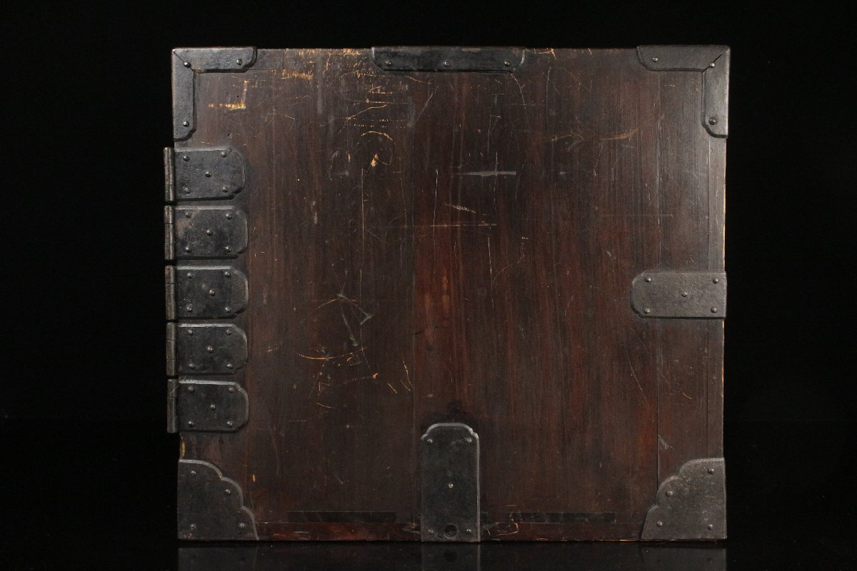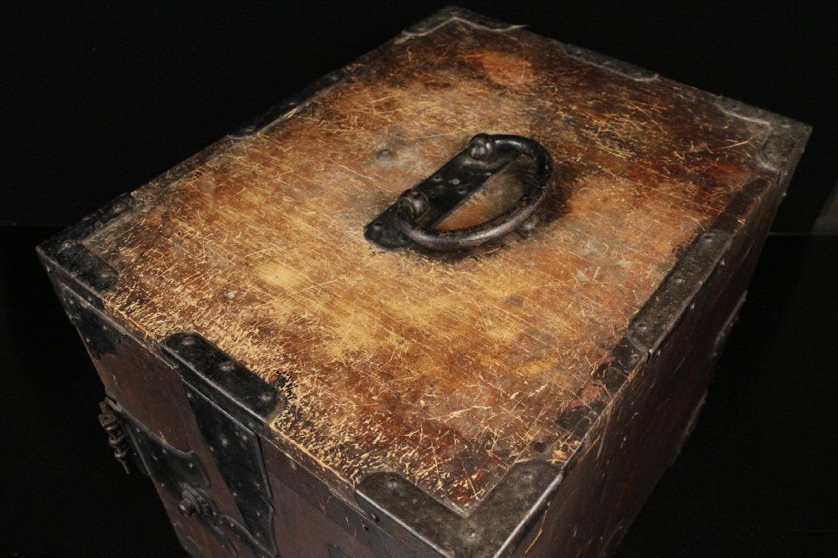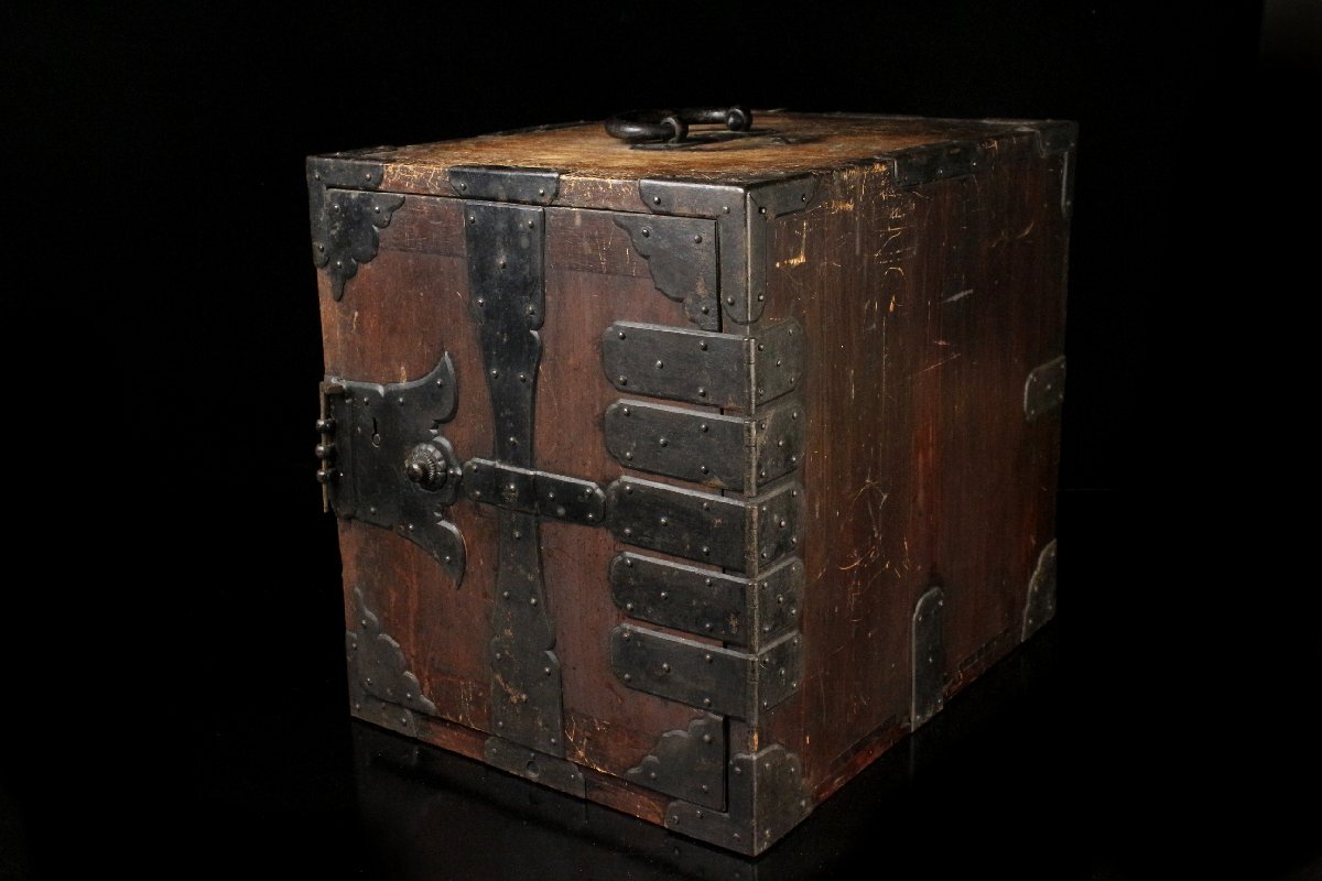 【LIG】時代木造 重厚鉄地金具 船金庫 古民具 旧家収蔵品 [.WQ]25.10 收藏