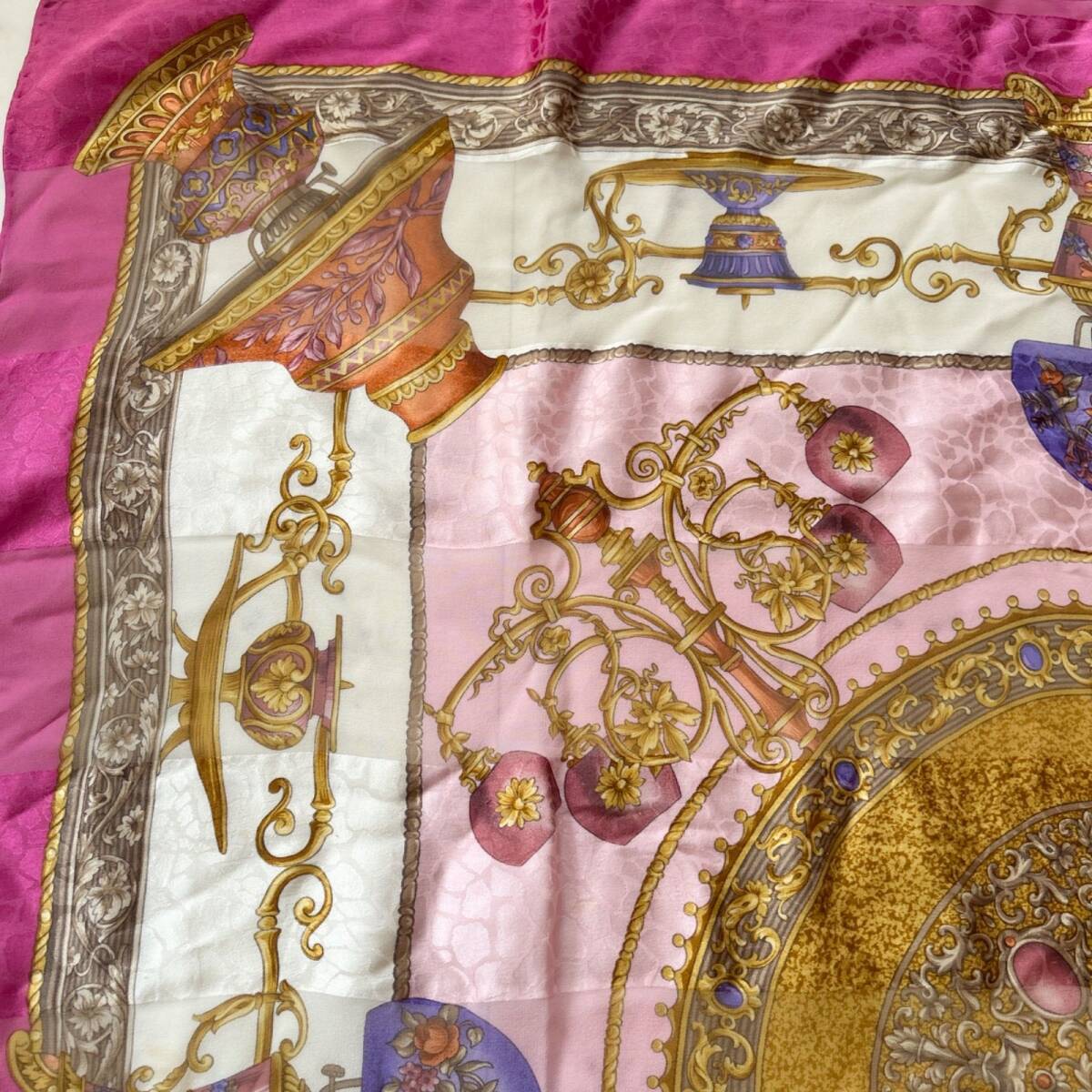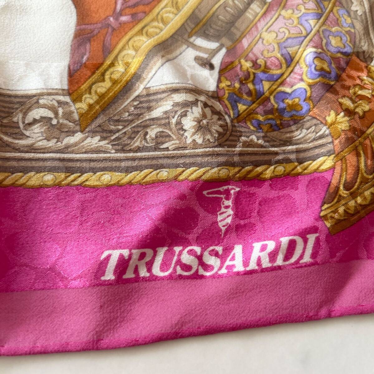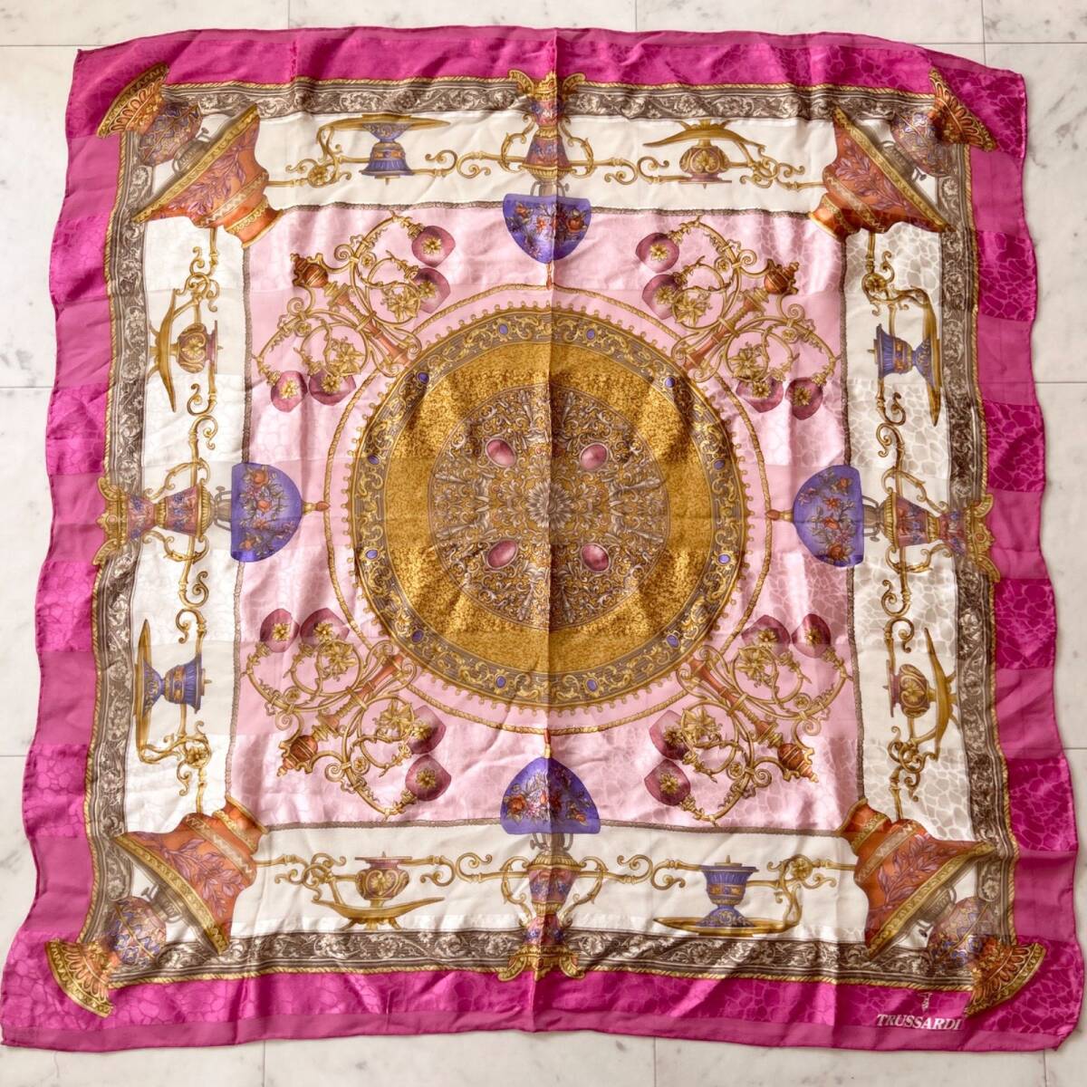 TRUSSARDI トラサルディ 大判スカーフ シルク100 ピンク系 透け感 シアー生地 エレガント柄 收藏