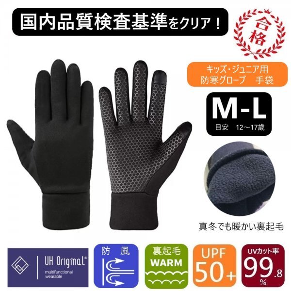【即日出荷】 フィールドグローブ 手袋 M-L 黒 [ UPF50+ UVカット率99.9% 透湿 ] 厚手タッチパネル対応 通学 サッカー ブラック キッズ 收藏