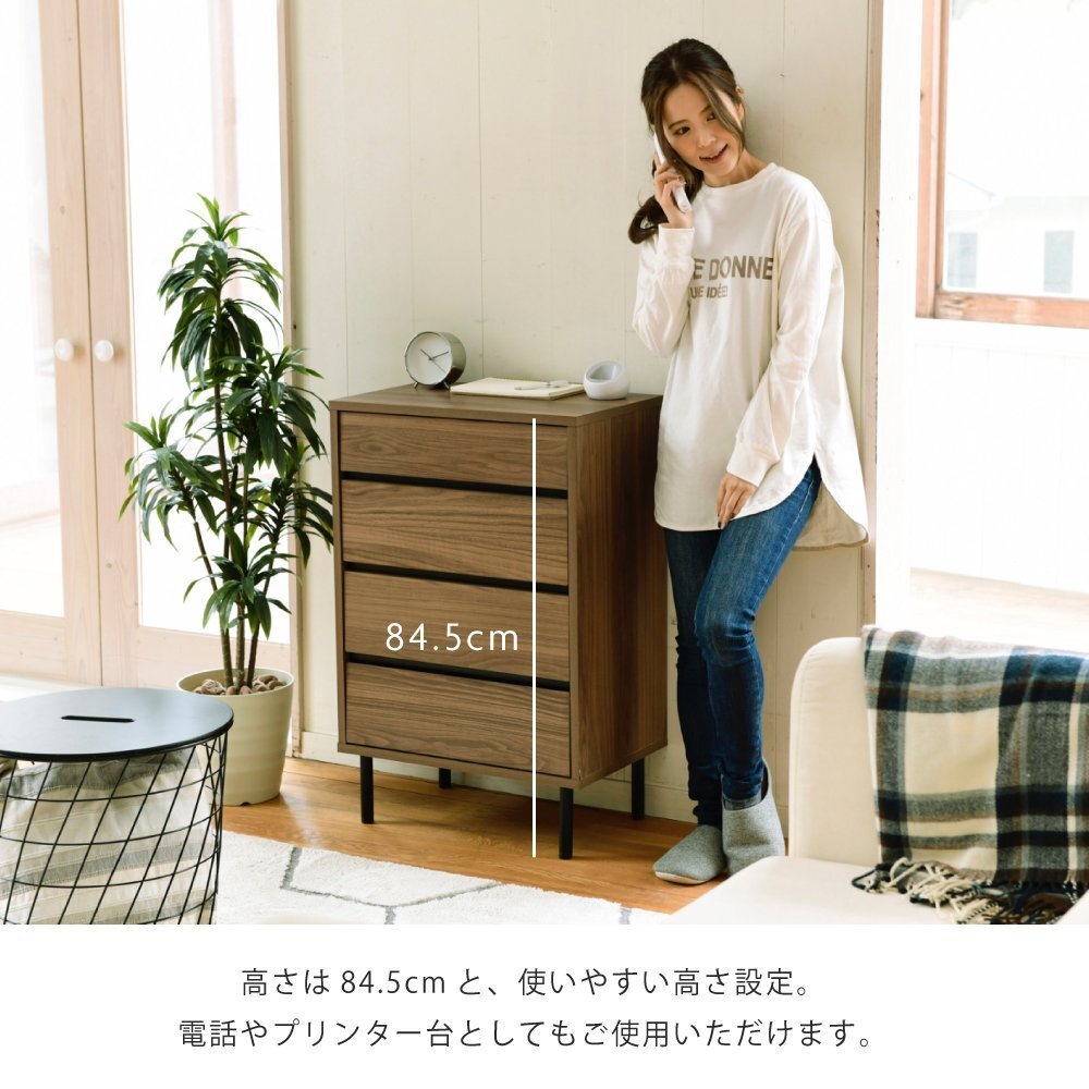 チェスト★新品/北欧テイスト スリムチェスト/4段 4杯 幅55cm 背面化粧/木目調 ブラウン ブラック/zz 收藏
