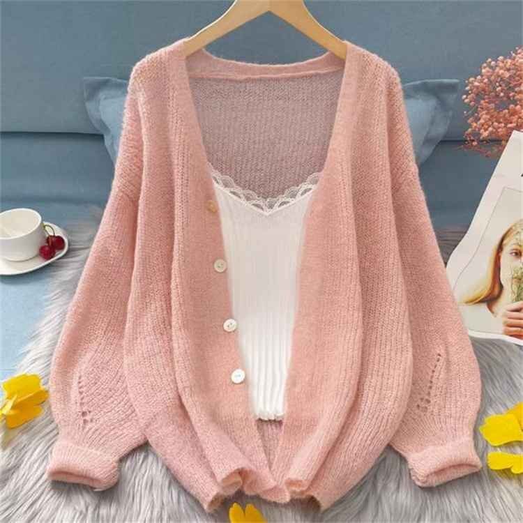 カーディガン 長袖 羽織 ニット 薄手 日よけ カジュアル レディース 大きいサイズあり S ピンク 收藏