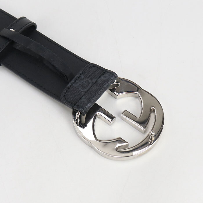 中古良品 GUCCI グッチ ベルト 411924 GGスプリーム メンズ ブラック #85 收藏