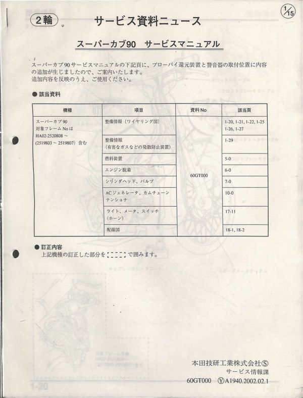 #3169/カブ90.C90D.CM1.BC-HA02/ホンダ.サービスマニュアル.サービス資料ニュース付/平成12年/無料配送/追跡可/匿名配送/正規品 收藏
