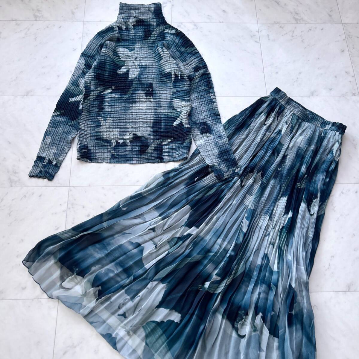 センソユニコ t.b プリーツセットアップ ロングスカート 9号 百合の花 濃淡グラデーション シアー 透け感 收藏