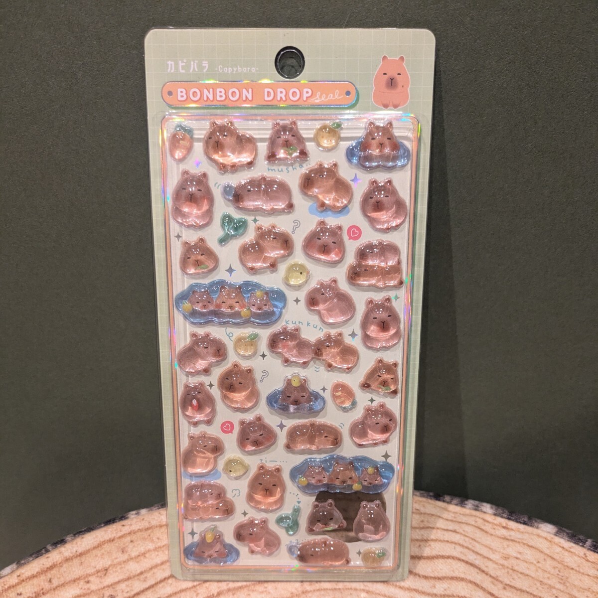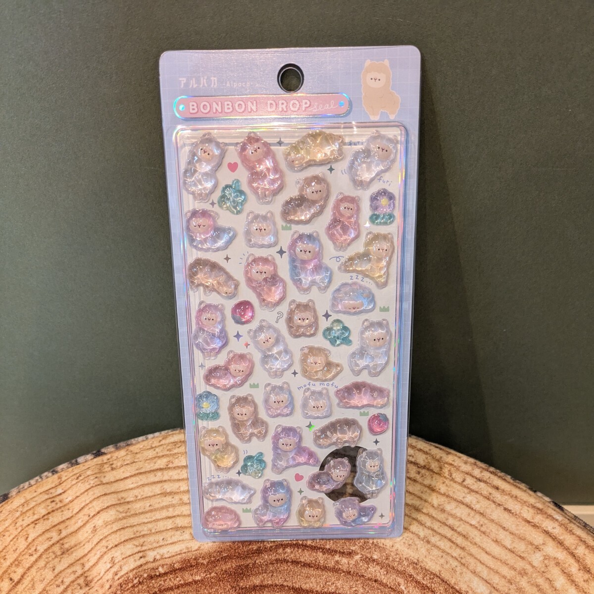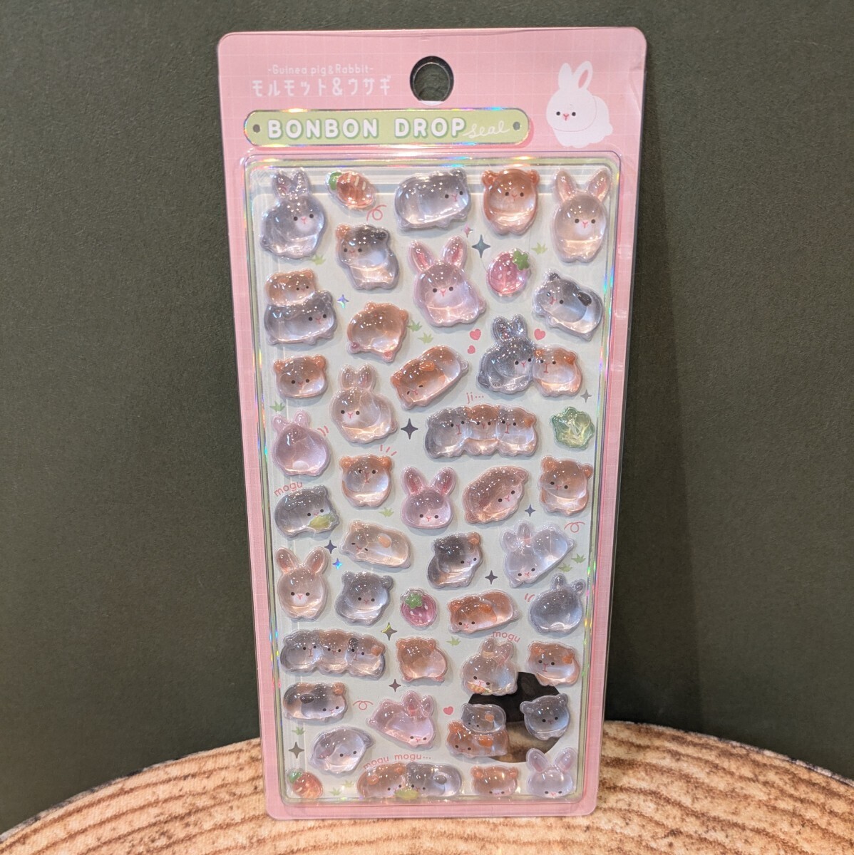 ボンボンドロップシール 4種セット うさぎ モルモット カピバラ アルパカ マヌルネコ プチドロップステッカーうるちゅるポップシール 收藏