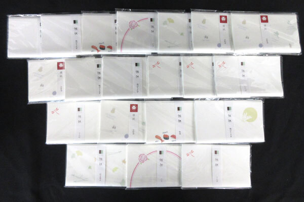 | 内 容 | ■懐紙 20枚入 ■日本製 ・とんぼ×5点 ・飛びうさぎ×5点 ・京野菜×4点 ・寿司×2点 ・バラ×2点 ・吹き寄せ×2点 |