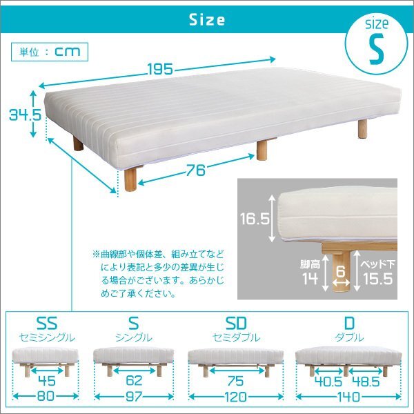 | 【ポイント】 「新発想」の一体型 脚付きロールマットレス Sサイズ。 フレームがないデザインだから、ライフスタイルを選びません。 D・SDサイズと組み合わせて家族で並んでおやすみいただくことも可能です。 ソファ使いも! 爽やかなホワイト、落ち着いた温かみのあるブラウン、シックなネイビーの3色からお選びください。 通気性と耐久性に優れた頑丈設計です。 ほどよい弾力で安定感のある寝心地のボンネルコイルマットレスです。 ロール梱包でのお届けなのでお部屋までスムーズに搬入できます。 組み立ても簡単。届いたその日から快適睡眠ライフを! |