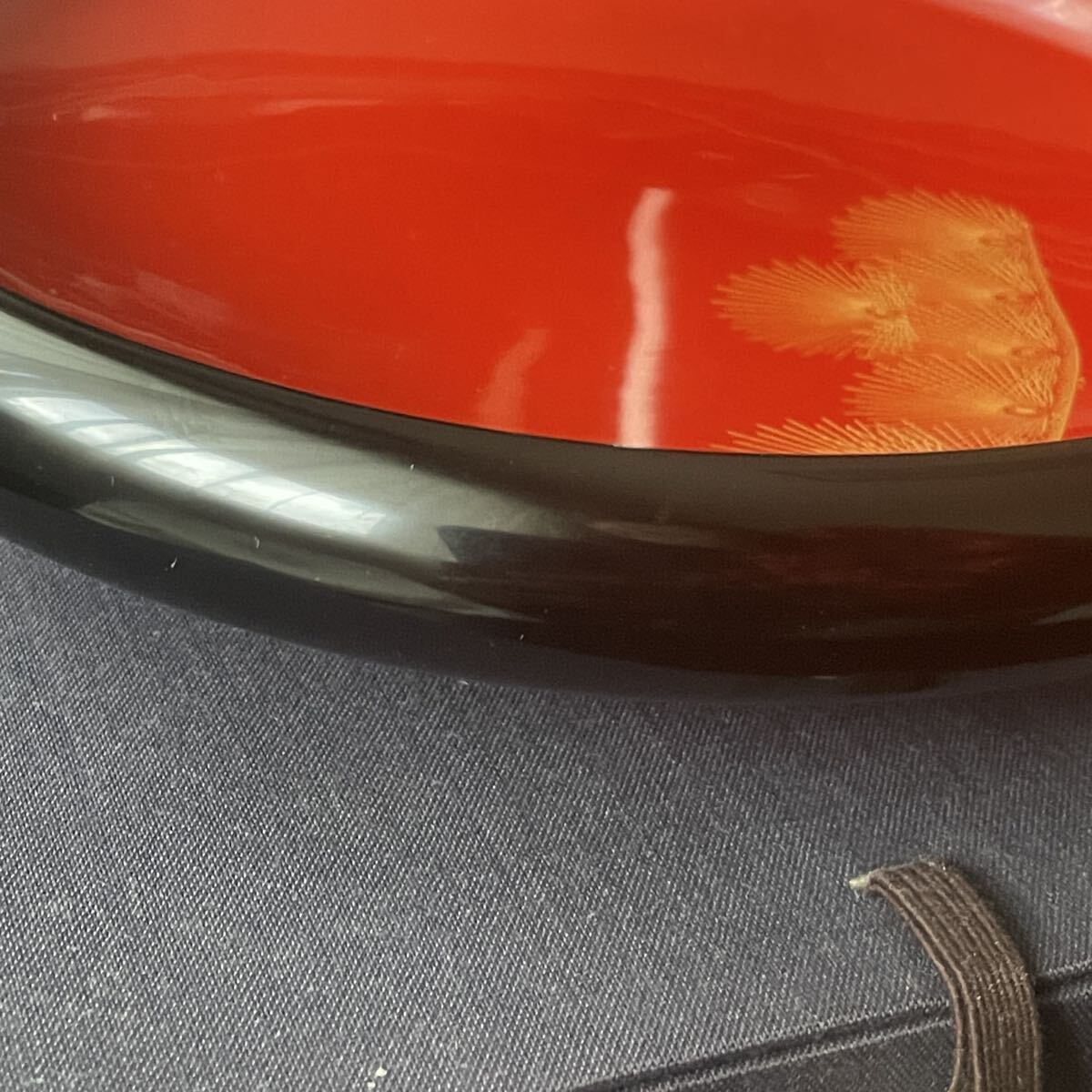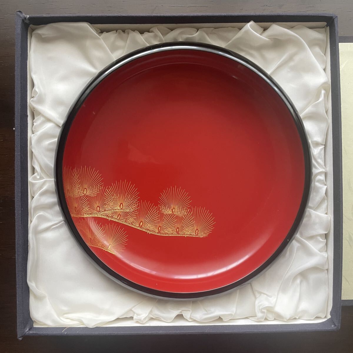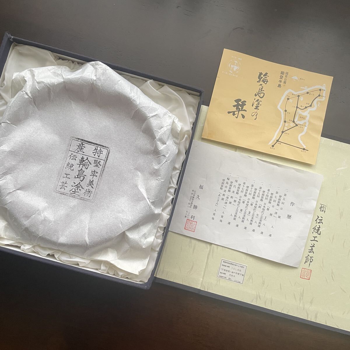 【未使用・美品・長期保管】輪島塗 福久勝利作 朱塗金蒔絵飾皿 共箱付 菓子器 伝統工芸 收藏