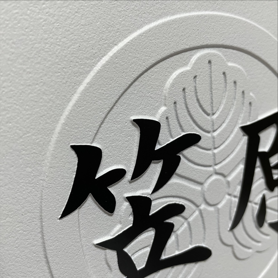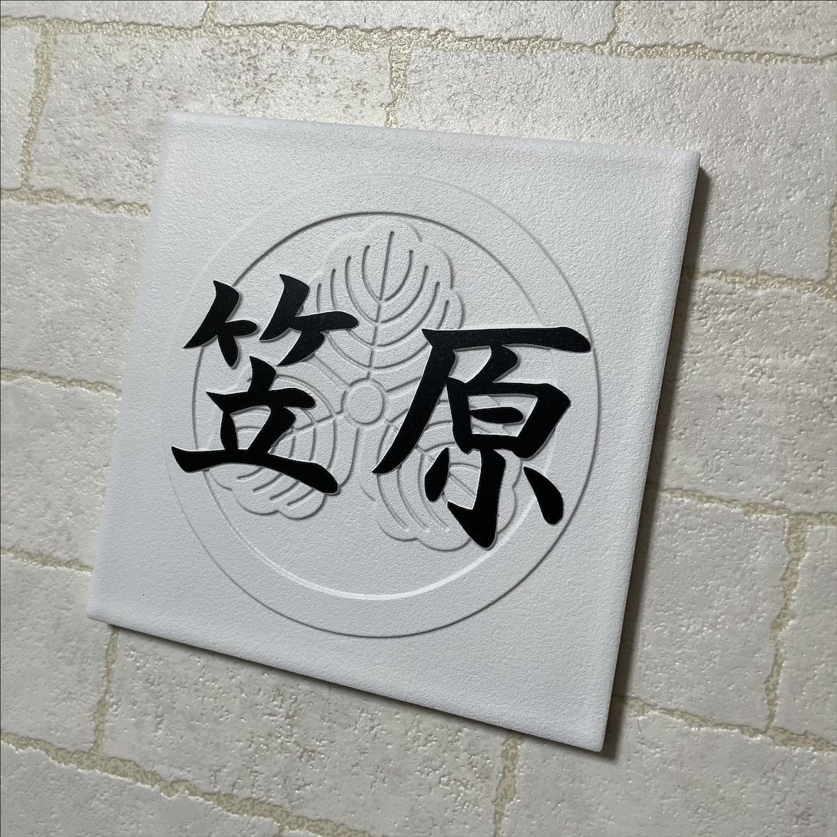 表札 見本品処分「笠原 丸に三つ柏」150角タイル ネームプレート 二層浮き彫り家紋表札 風水 收藏