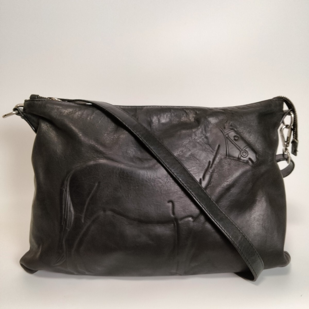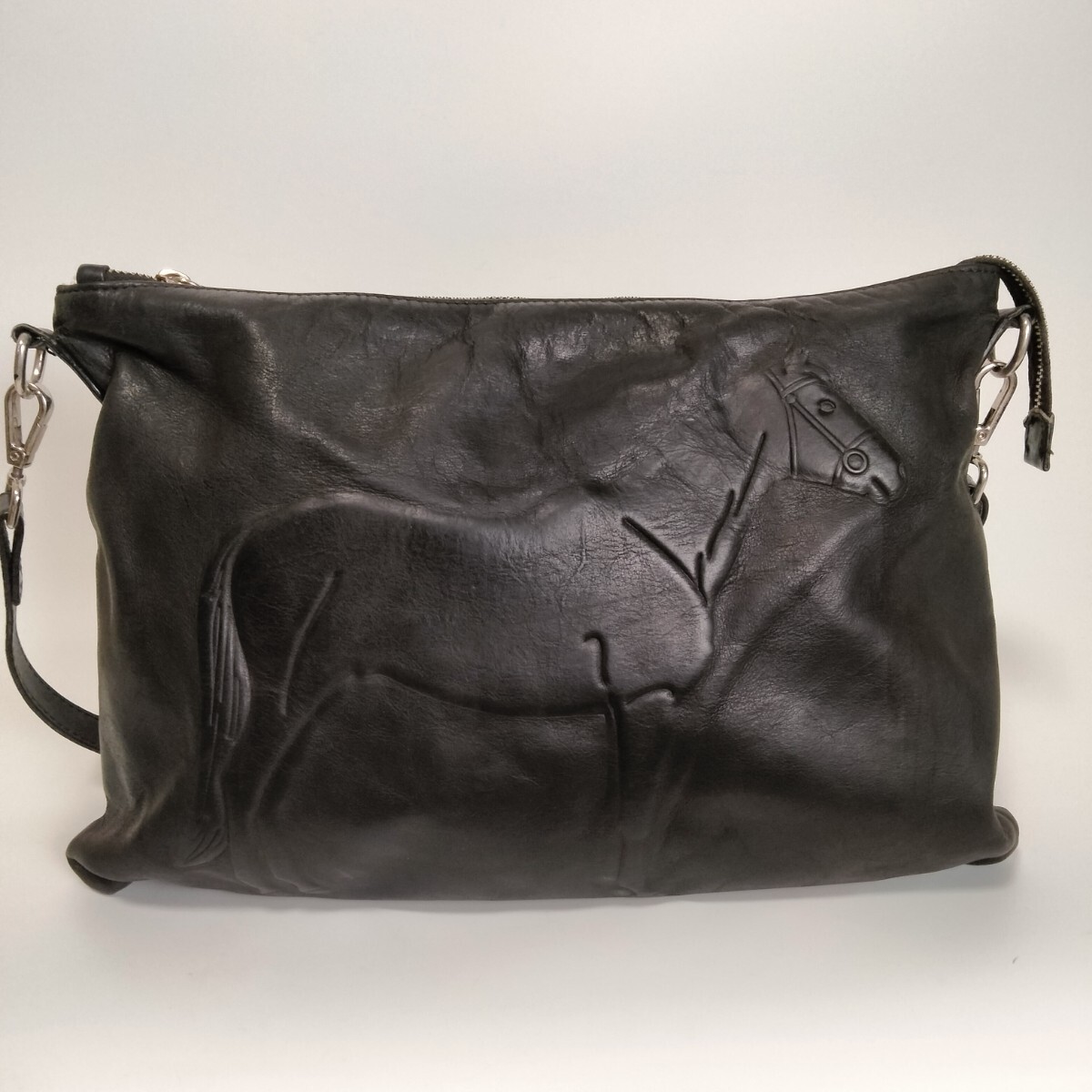 イオペレ ear別注 馬モチーフ エンボス ショルダーバッグ ブラック 黒 A4収納可 レザー 動物 アニマル IO PELLE 收藏