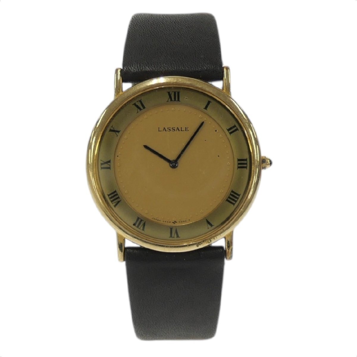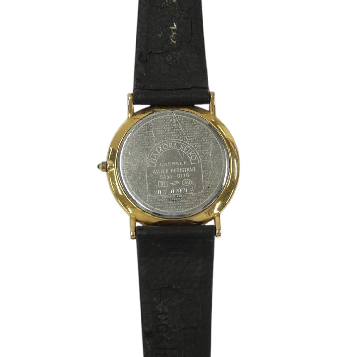 1円スタート 稼働品 SEIKO セイコー LASSALE ラサール 5A54-0110 クォーツ QZ 2針 ローマン ラウンド ゴールド文字盤 メンズ 腕時計 收藏