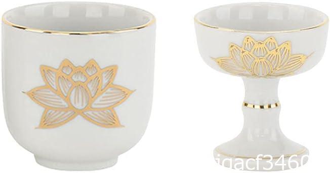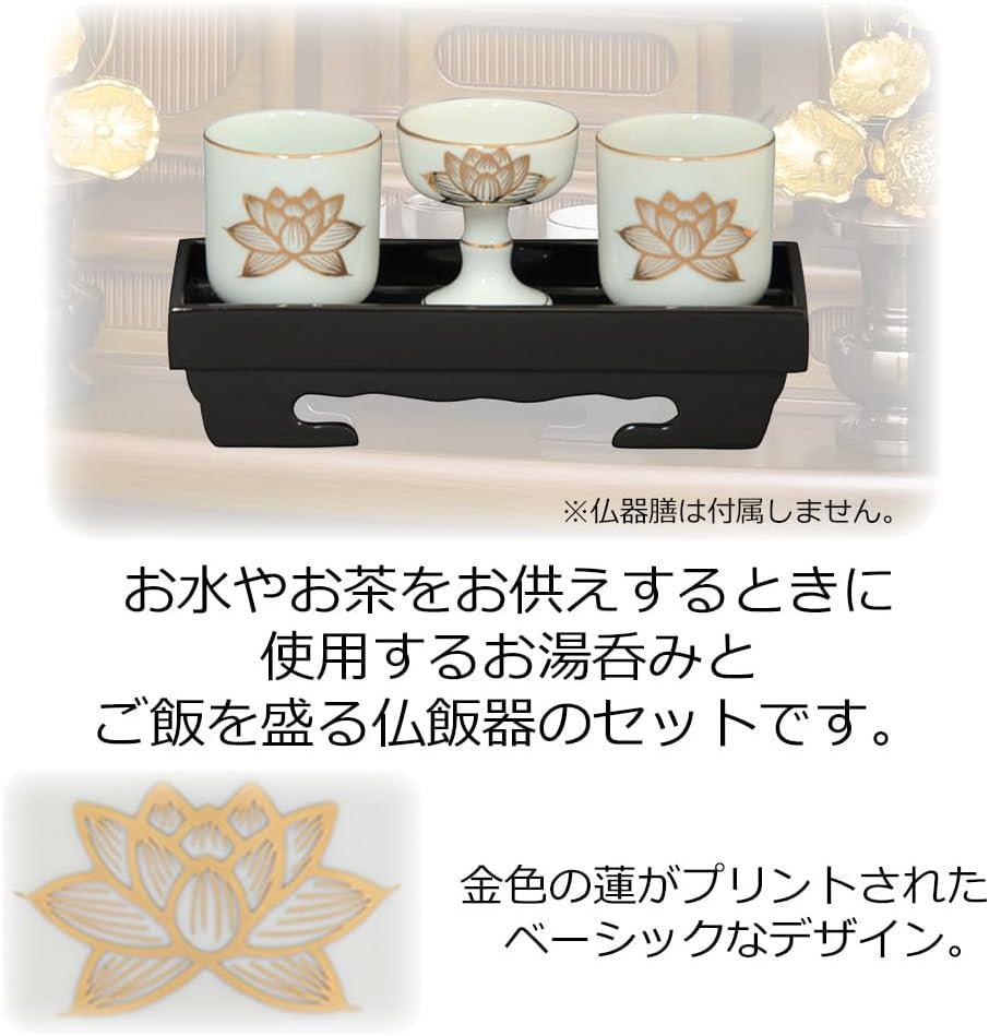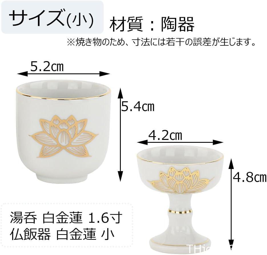 お仏壇のはせがわ 仏飯器 湯呑 仏具セット 2個セット (白金蓮/小) 日本製 仏飯 仏器 湯呑み (白/金蓮柄) 仏壇 仏具 仏 收藏